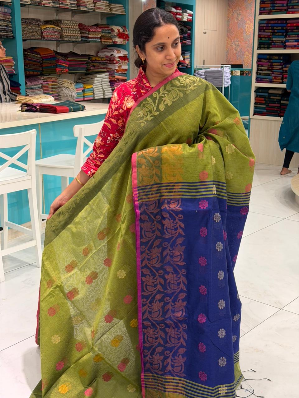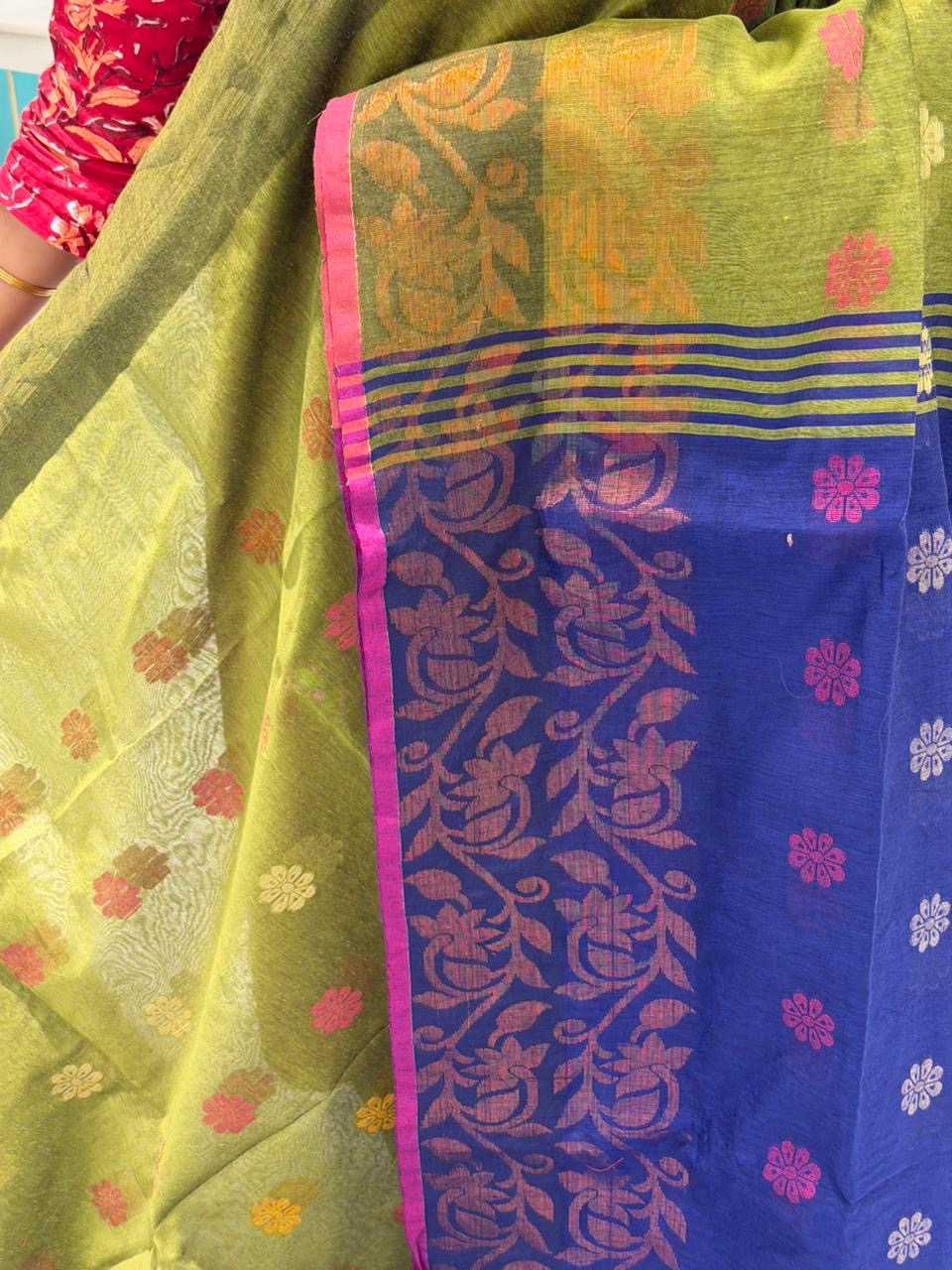 Blue & Olive Green Jamdani Zari Work Saree SL157
