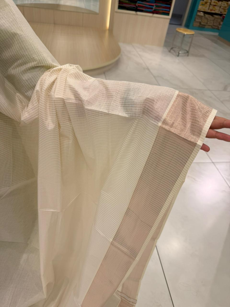 Kerala Cotton Lines Saree With Rose Copper Kasavu Border SL255