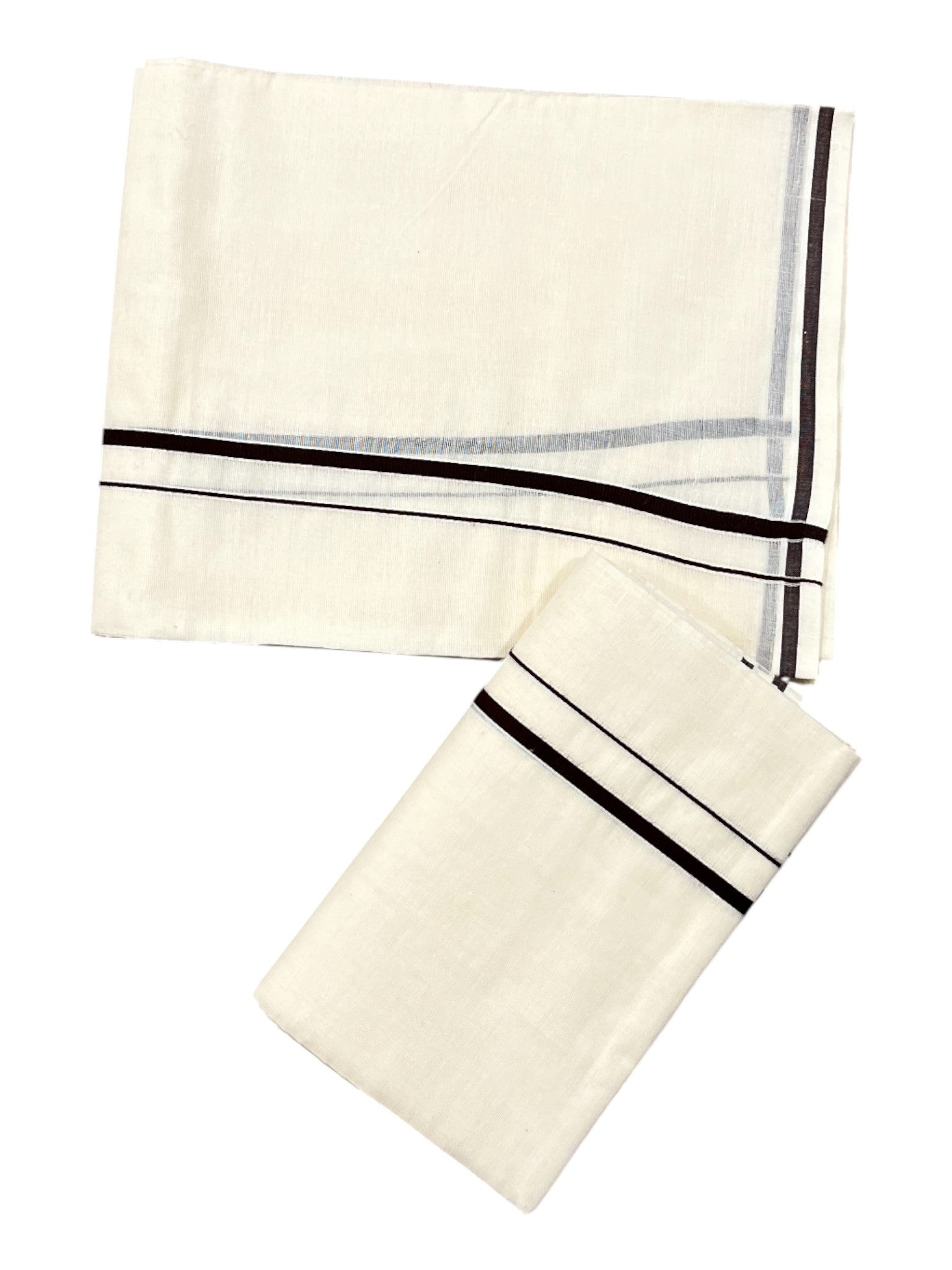 Kerala Cotton Mundum Neriyathum Single (Set Mundu) with Black Puliyilakkara