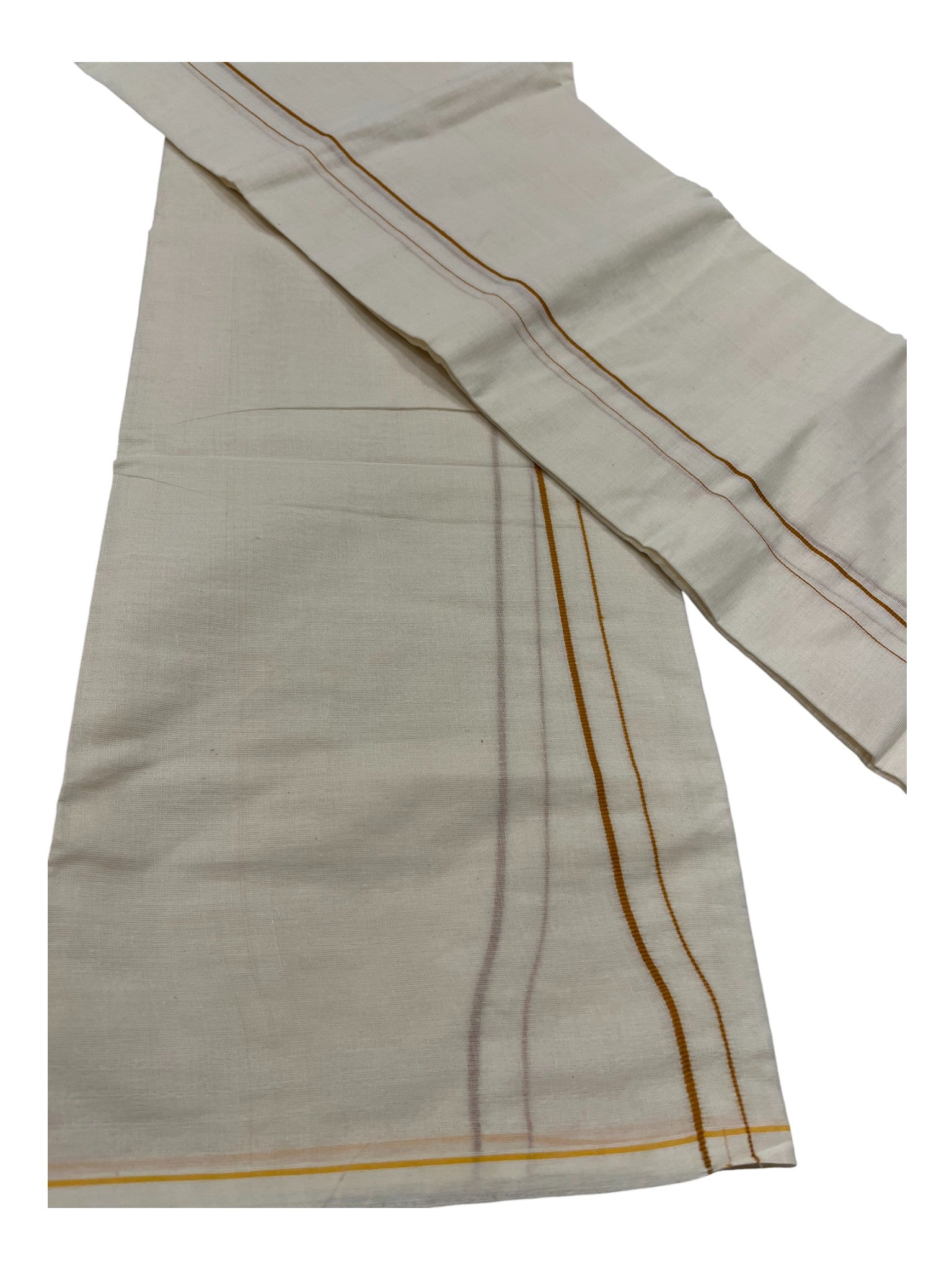 Kerala Cotton Mundum Neriyathum Single (Set Mundu) with Brown Puliyilakkara
