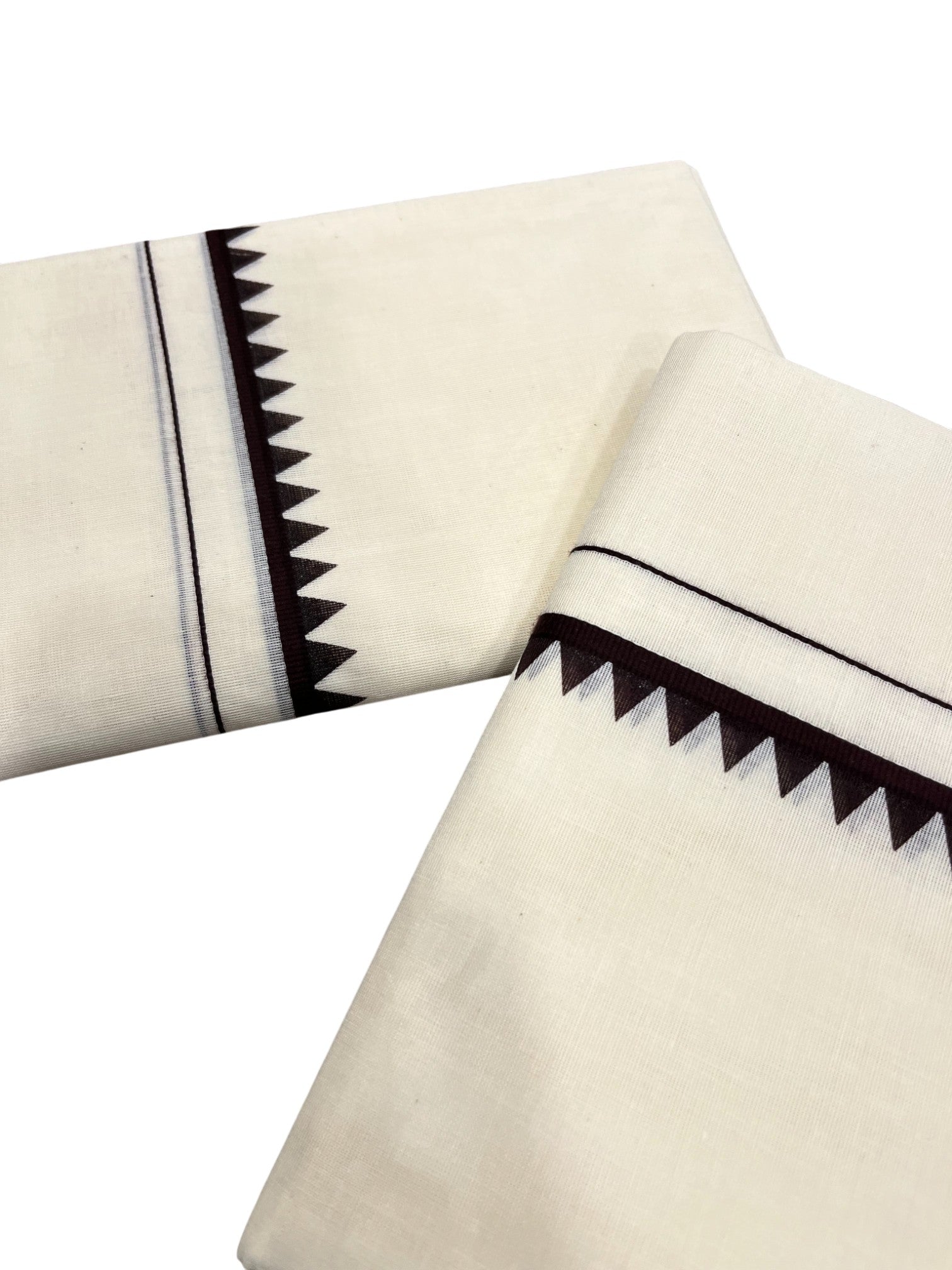 Southloom Kerala Cotton Set Mundu (Mundum Neriyathum) with Brown Block Prints on Body