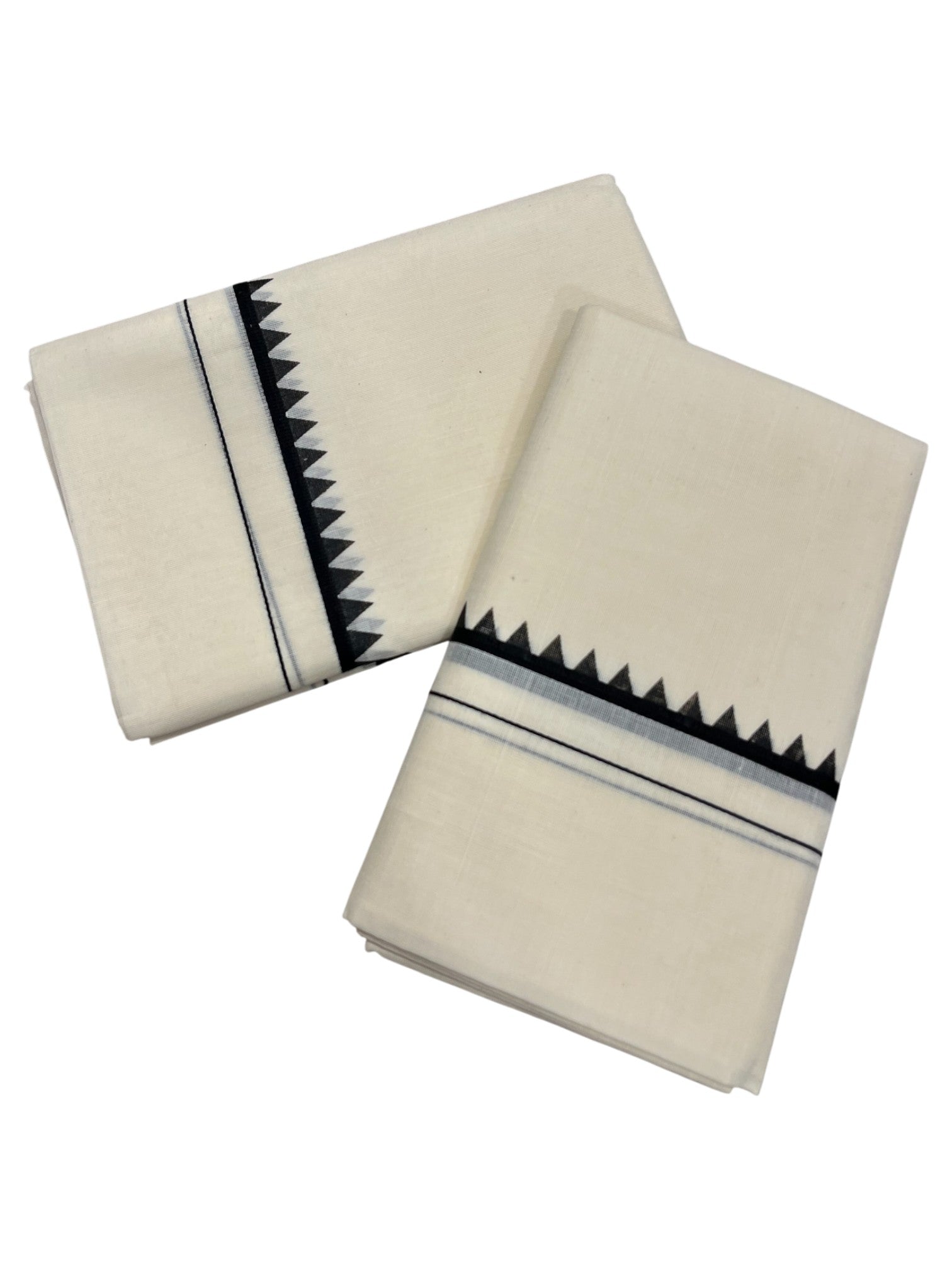 Southloom Kerala Cotton Set Mundu (Mundum Neriyathum) with Black Block Prints on Body