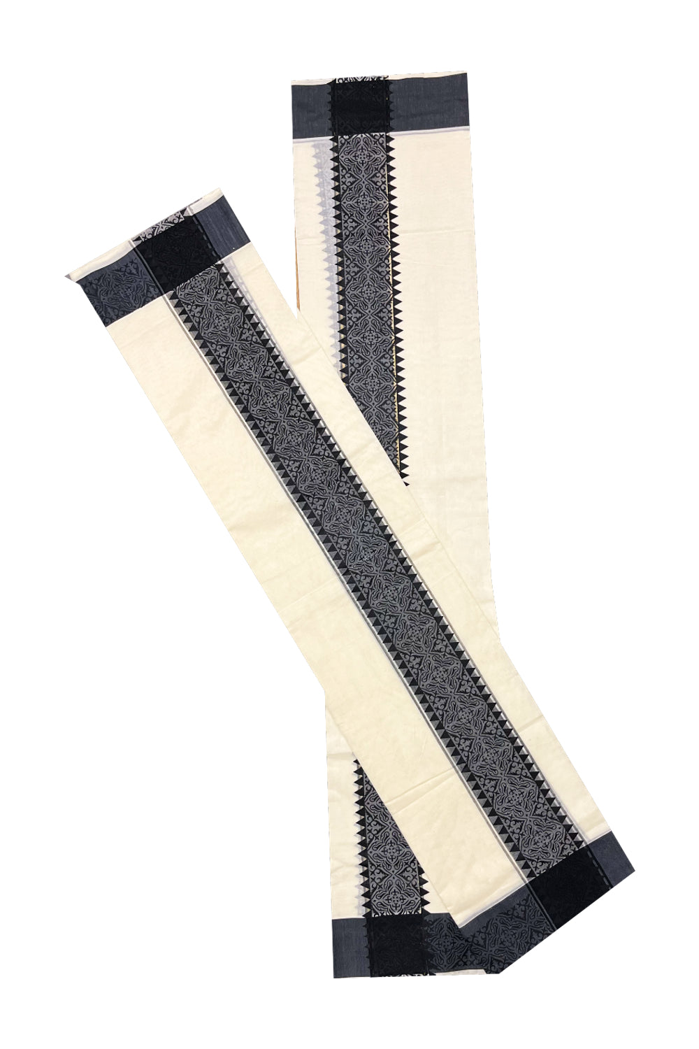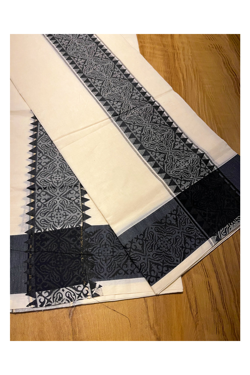 Kerala Cotton Single Set Mundu (Mundum Neriyathum) with Black Temple Block printed Border 2.80 mtr