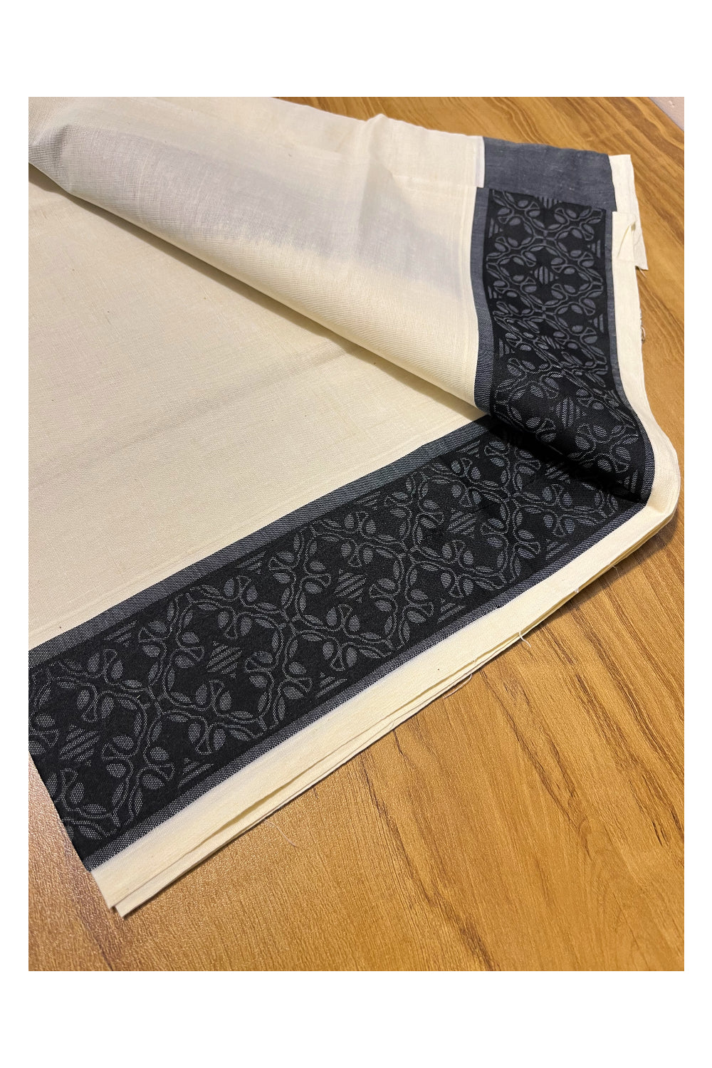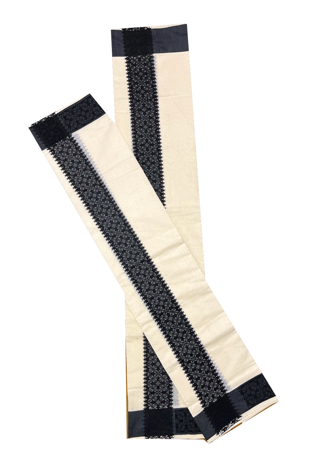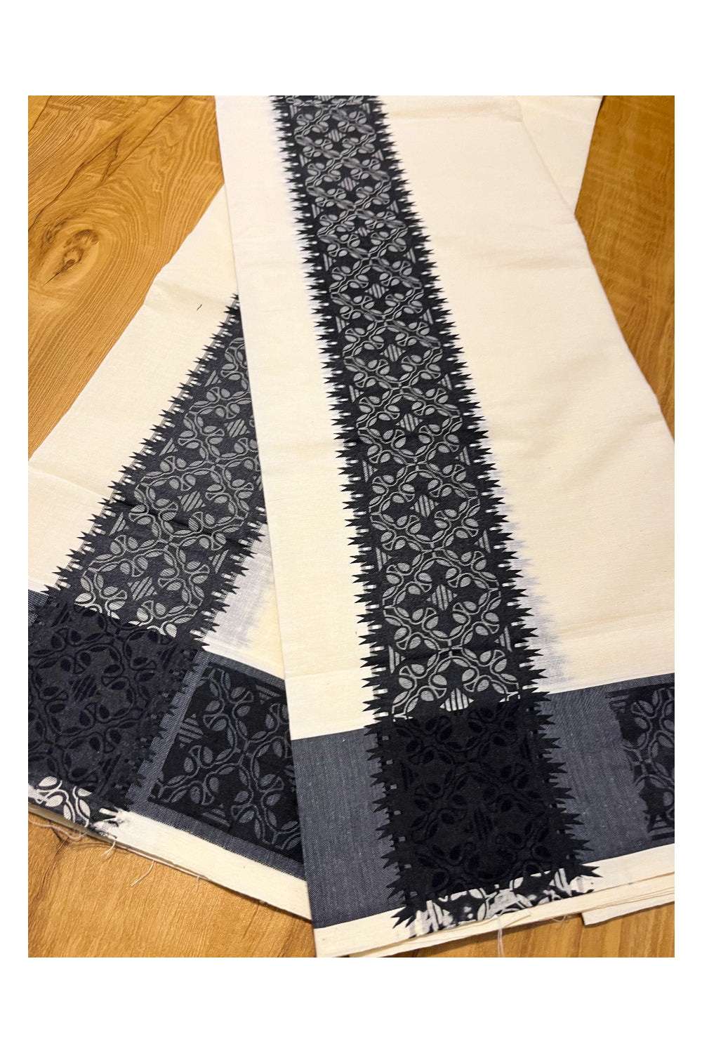 Kerala Cotton Single Set Mundu (Mundum Neriyathum) with Black Block printed Border 2.80 mtr
