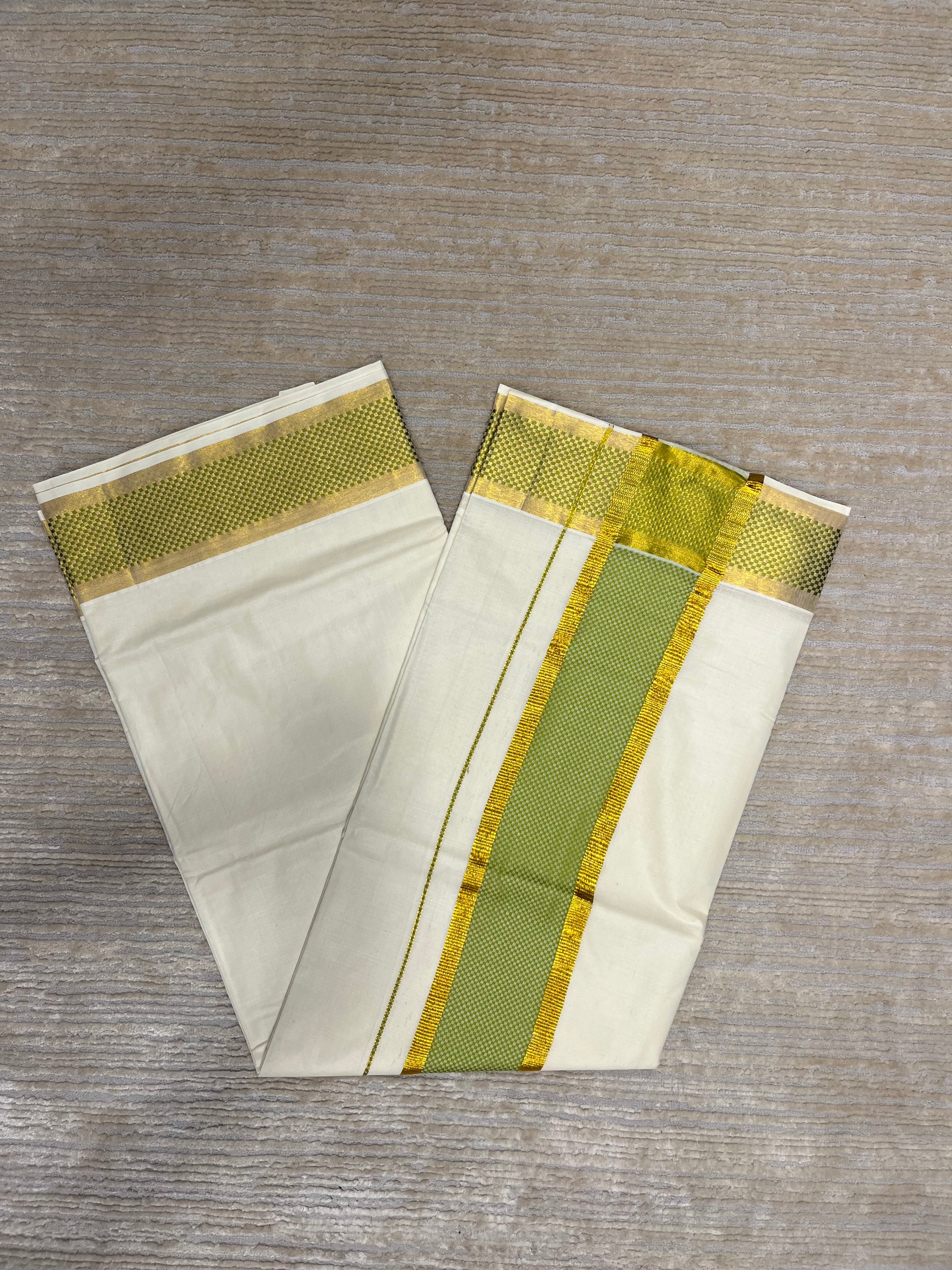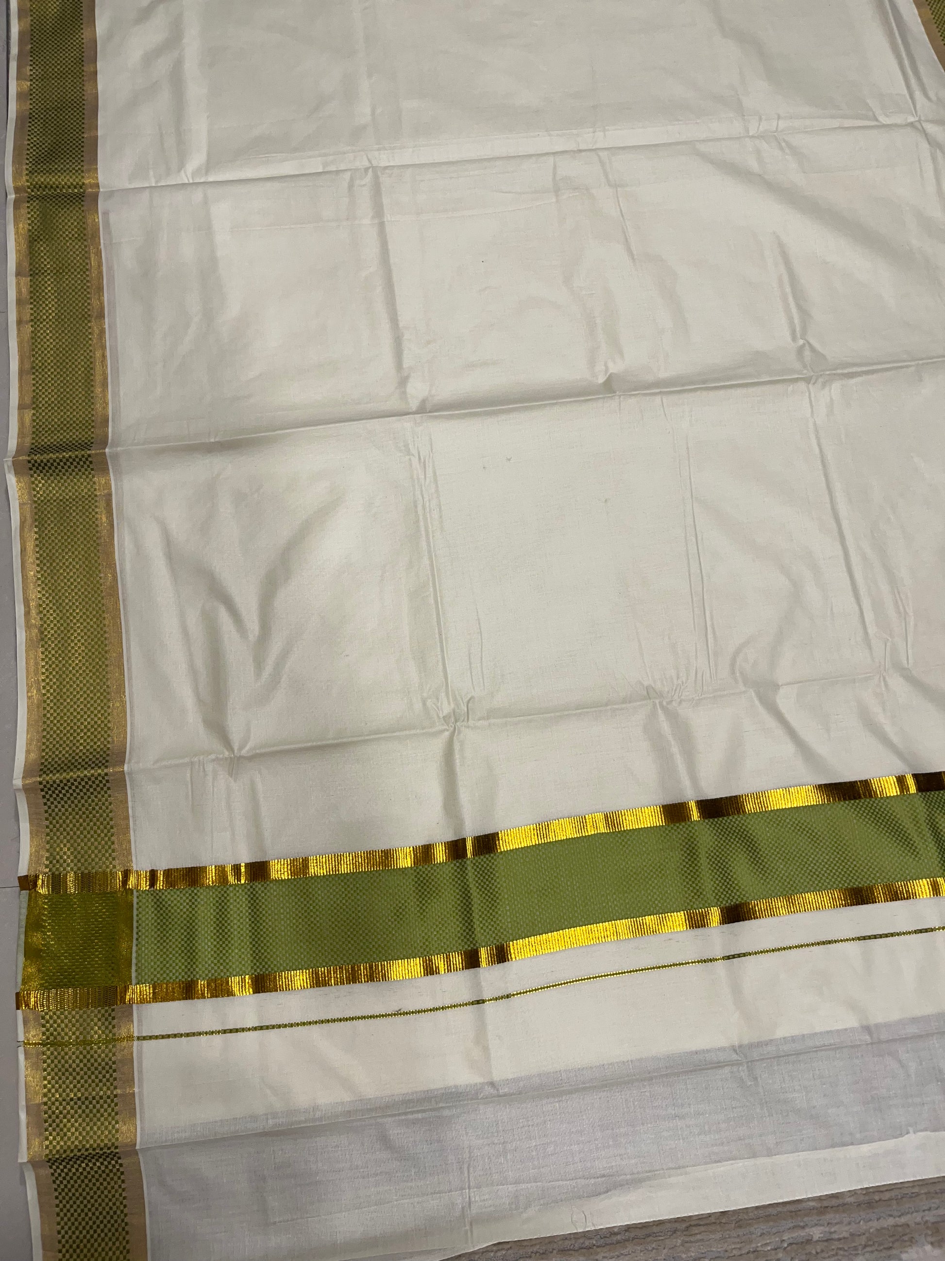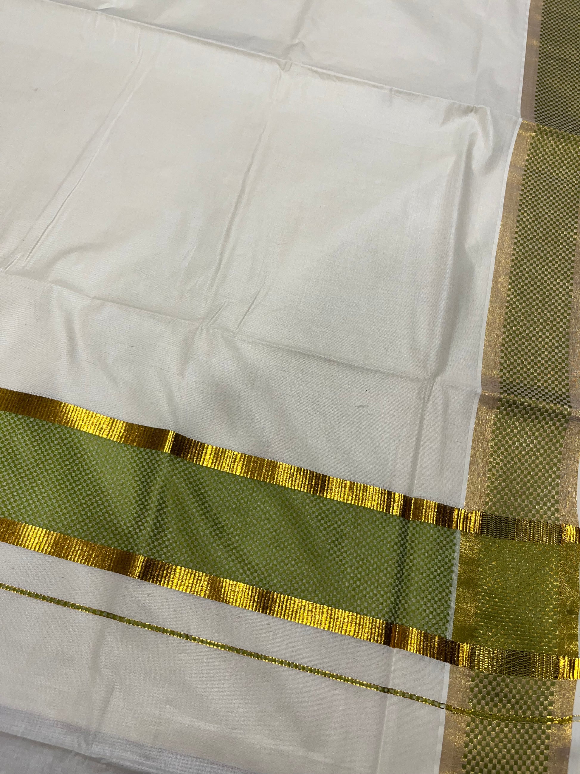 Southloom Kerala Kasavu Cotton Saree with Olive Green Paa Neythu Border