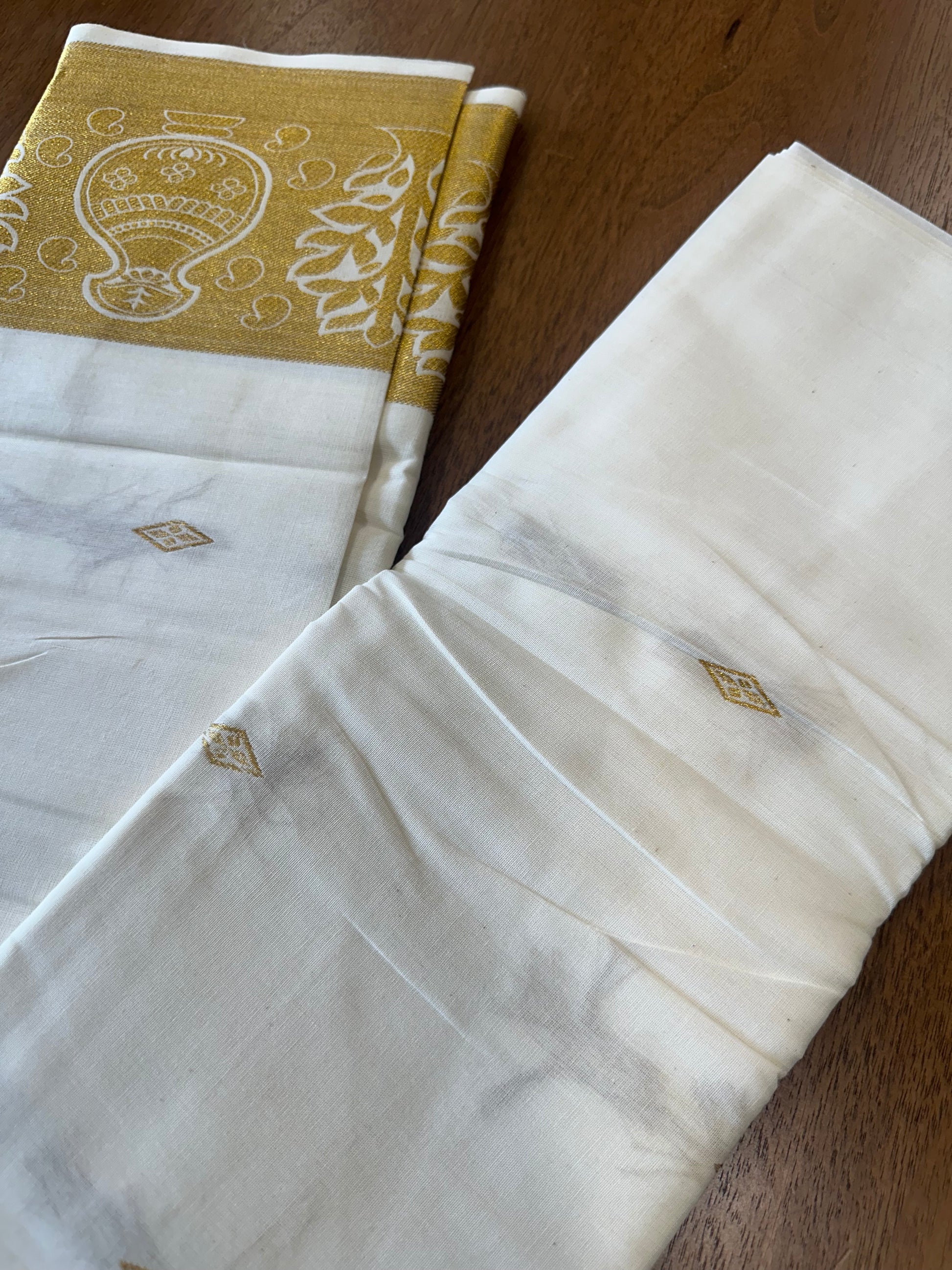 Kerala Plain Cotton Skirt Material with Kasavu Woven Border (4 meters)