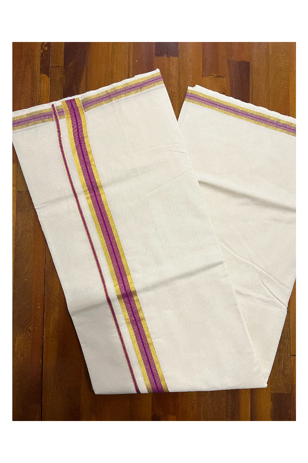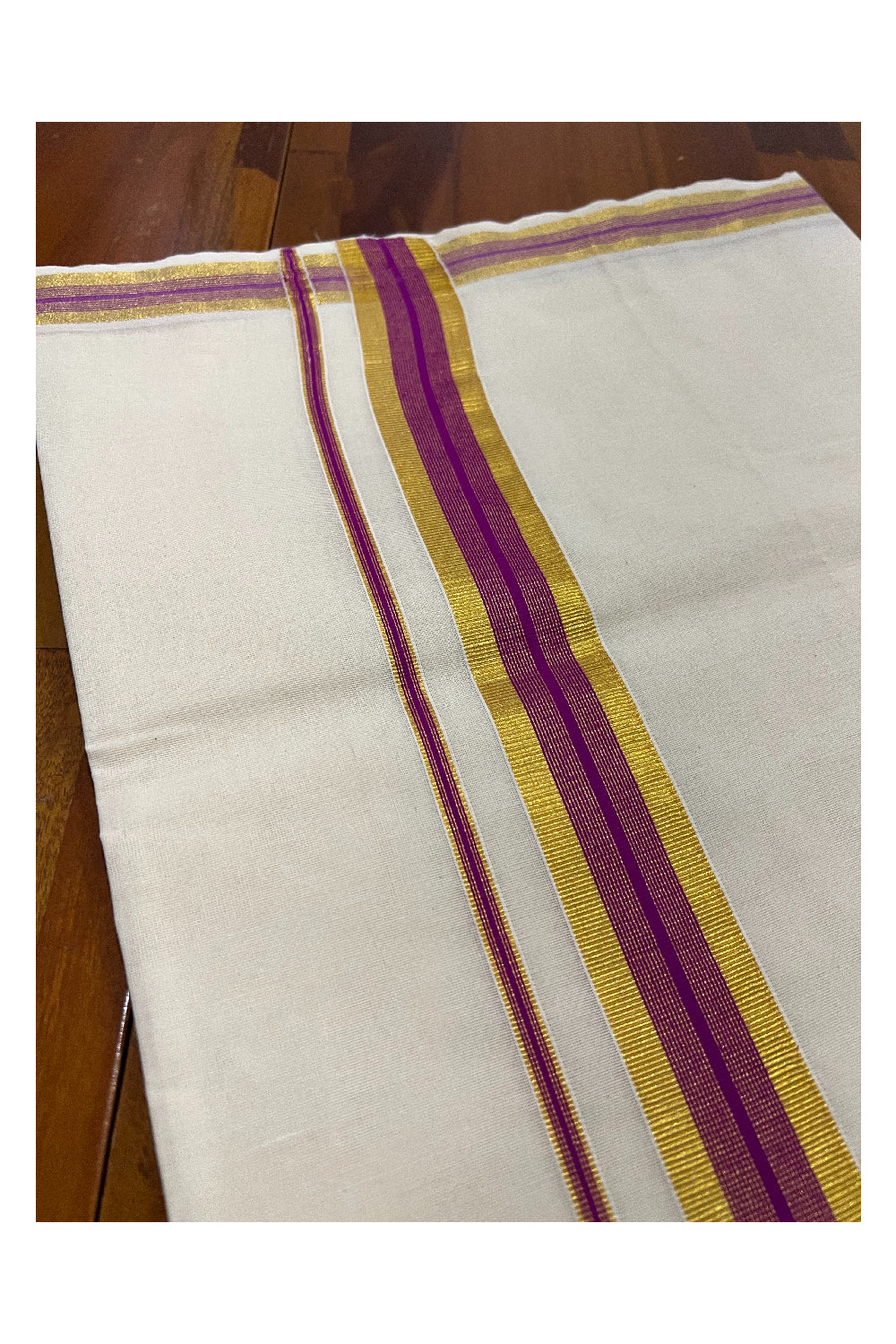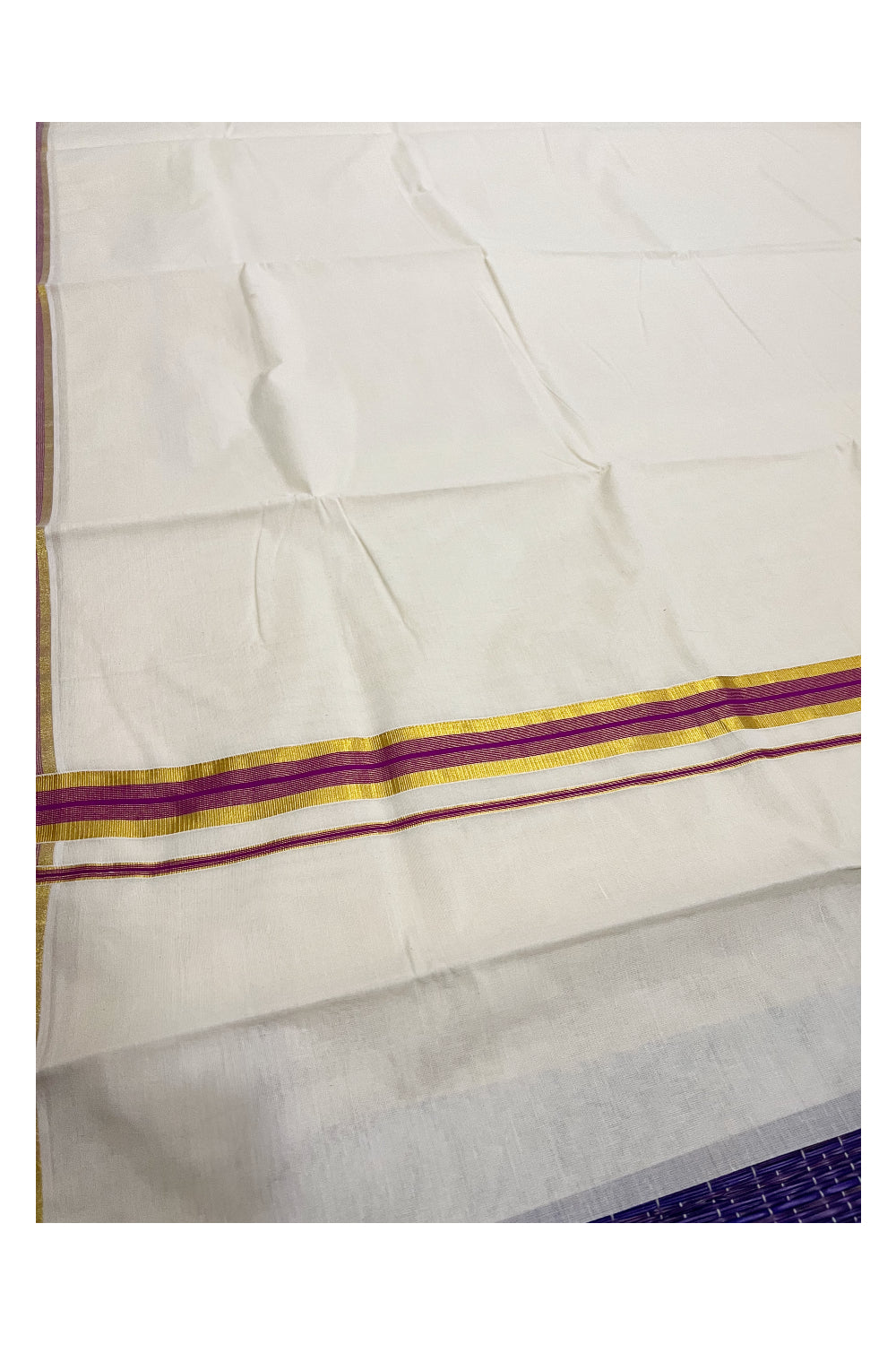 Pure Cotton Off White Kerala Saree with a Kasavu and Magenta coloured woven border.