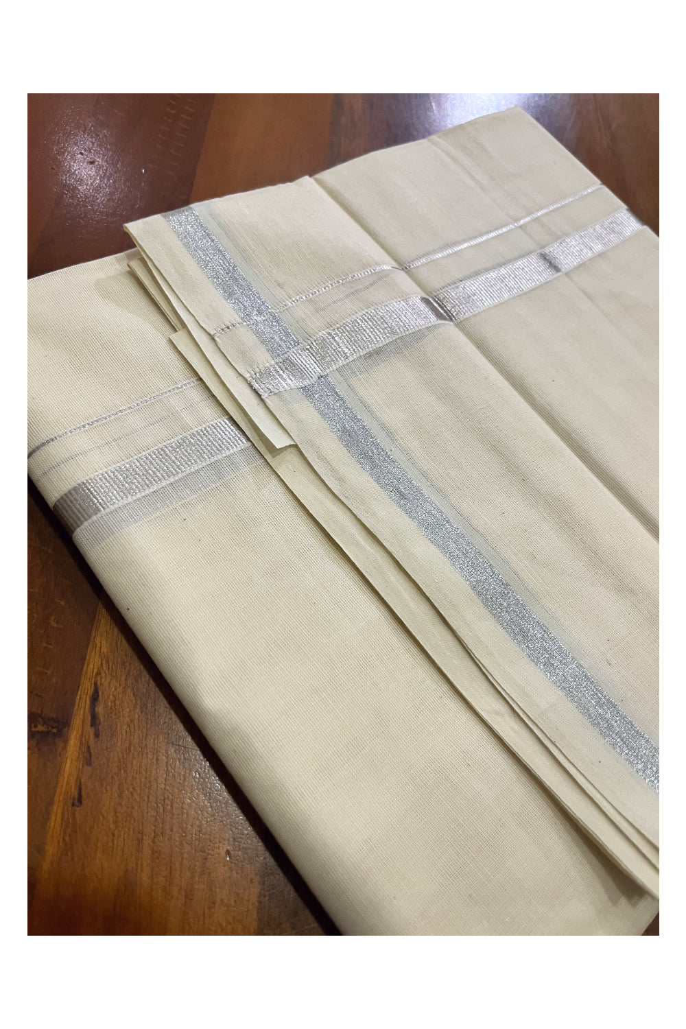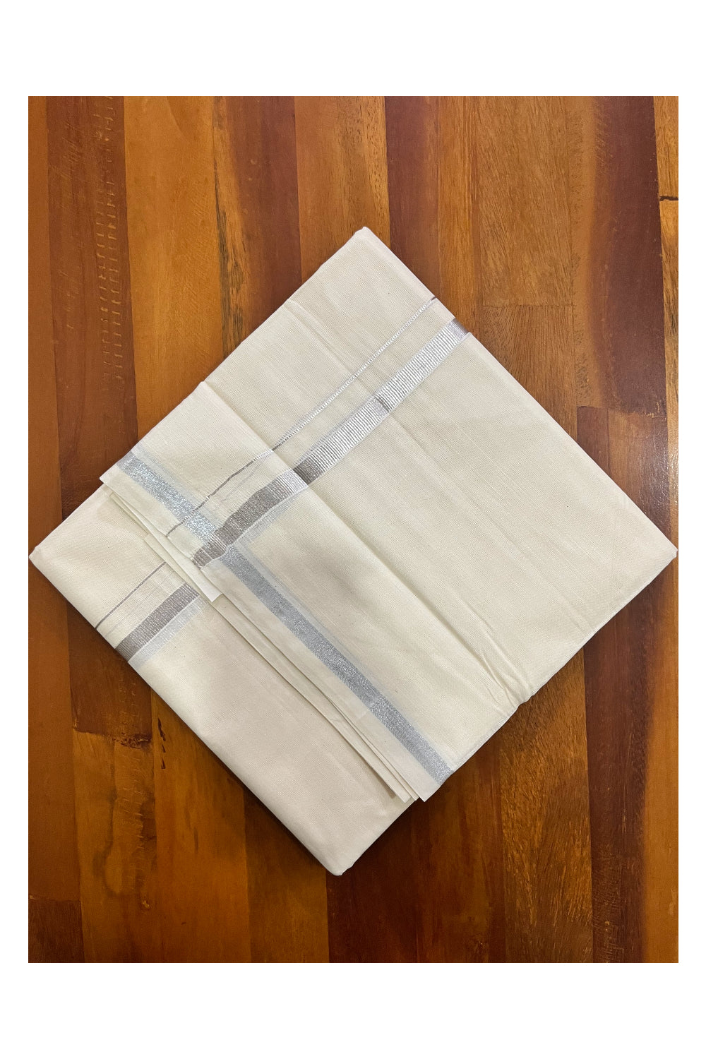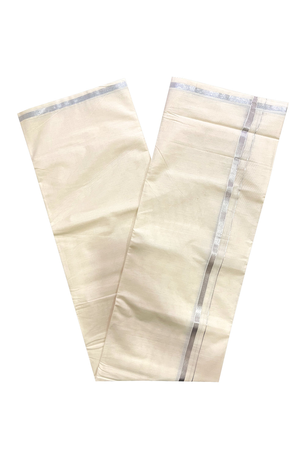 Off White Kerala Cotton Double Mundu with 0.5 inch Silver Kasavu Border (South Indian Kerala Dhoti)