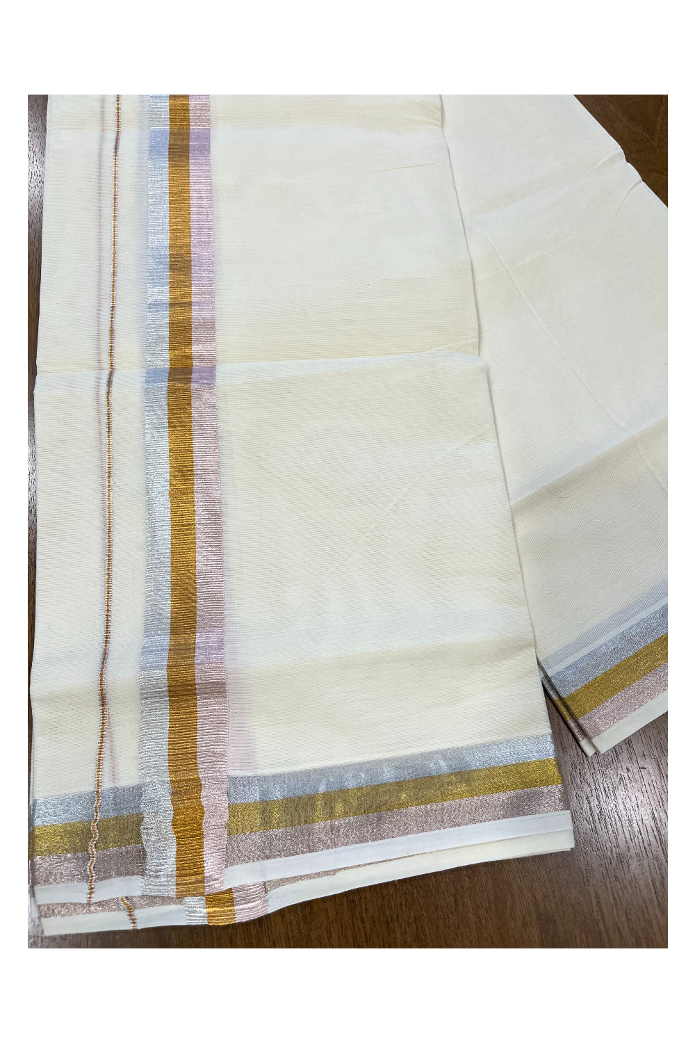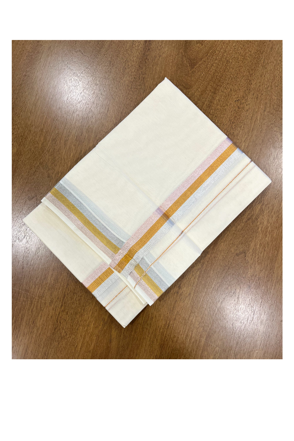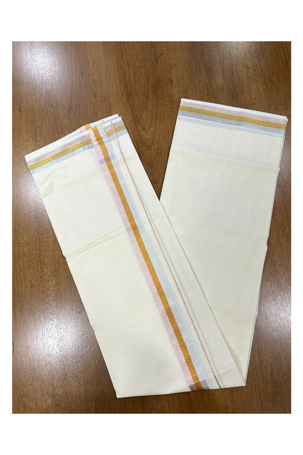 Off White Kerala Double Mundu with Rosegold and Silver Kasavu Kara (South Indian Kerala Dhoti)