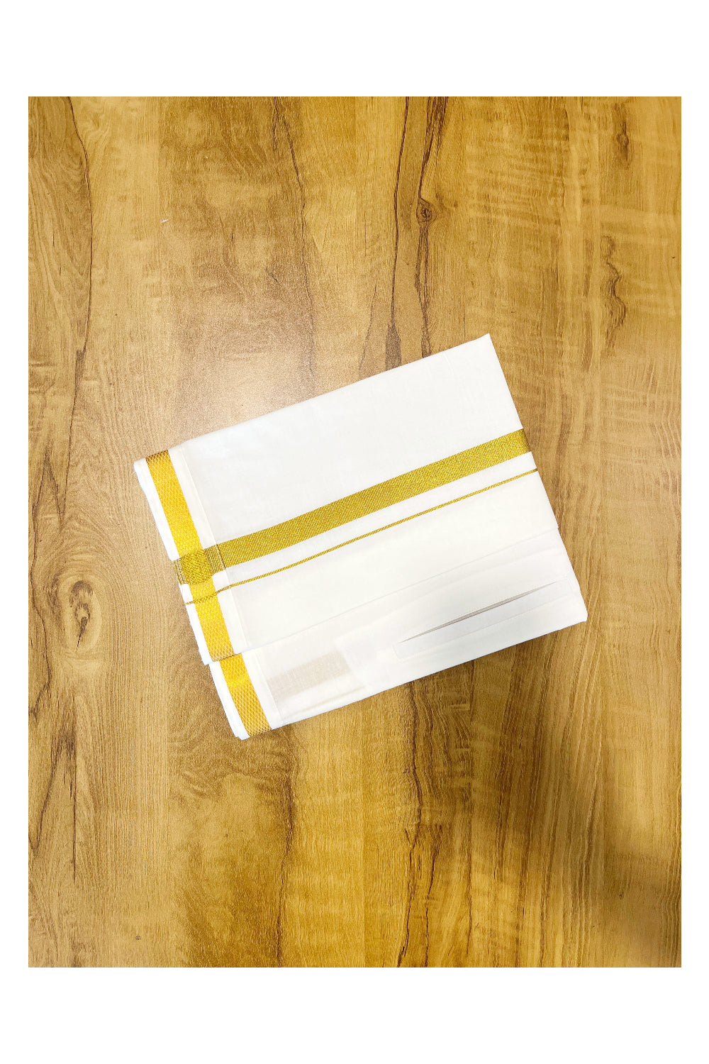 Off White Pure Cotton VELCRO Single Mundu with Kasavu Border (South Indian Kerala Dhoti)