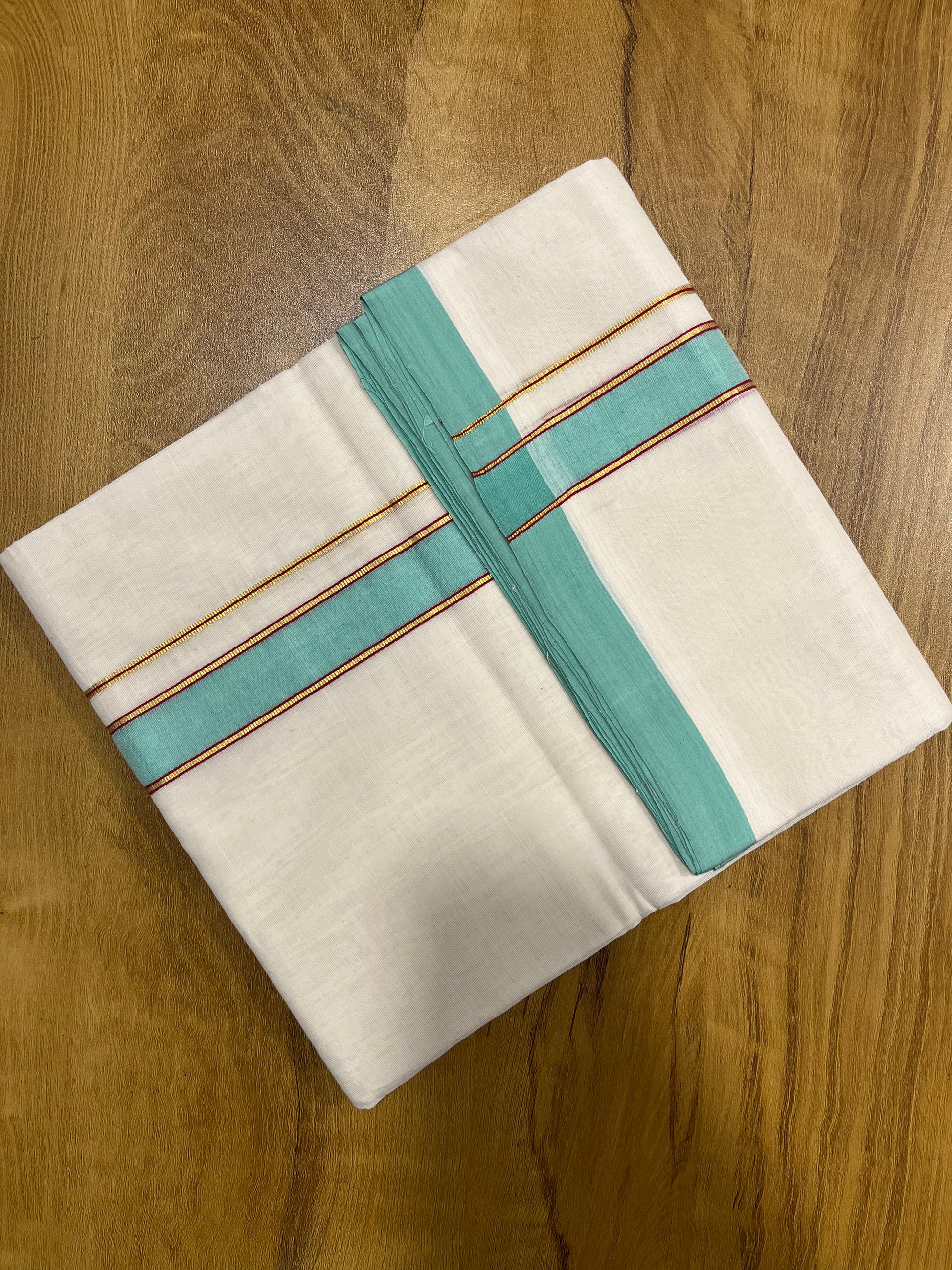 Premium Balaramapuram Handloom Unakkupaavu 1 inch Double Mundu with Kasavu and Green Kara