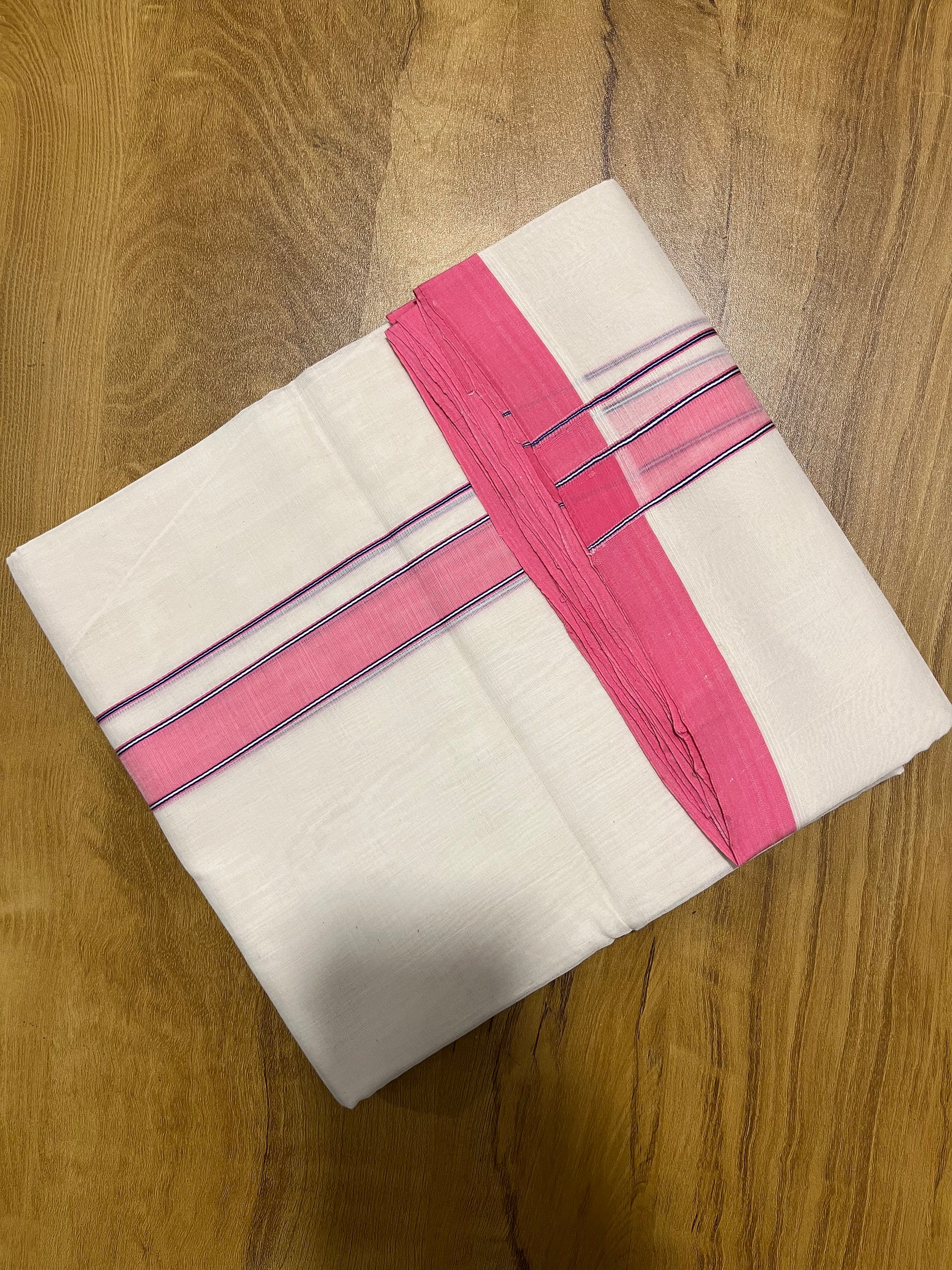 Premium Balaramapuram Handloom Unakkupaavu Cotton Double Mundu with 1 inch Pink Kara