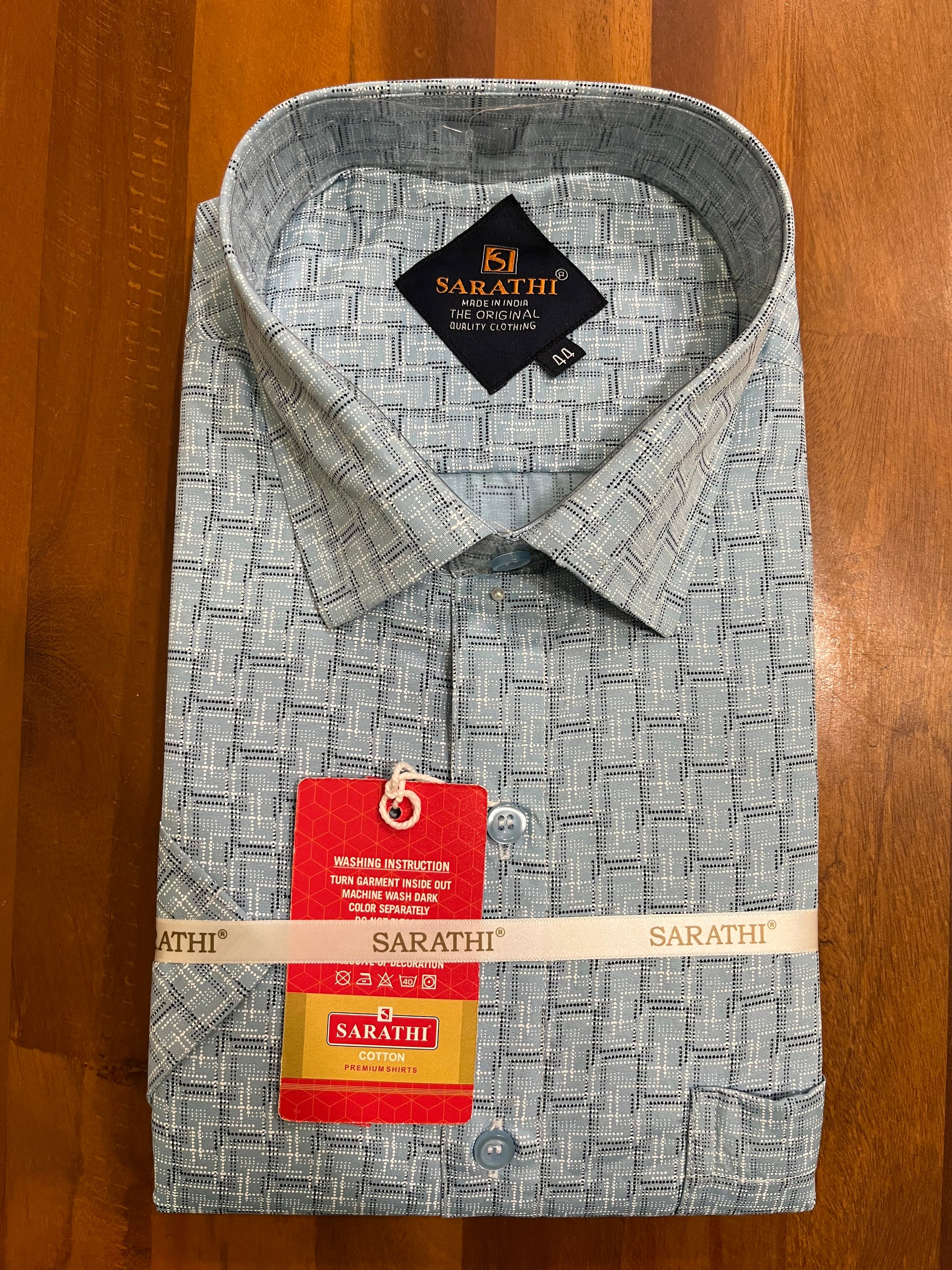 Pure Cotton Blue Printed Shirt (46 HS)