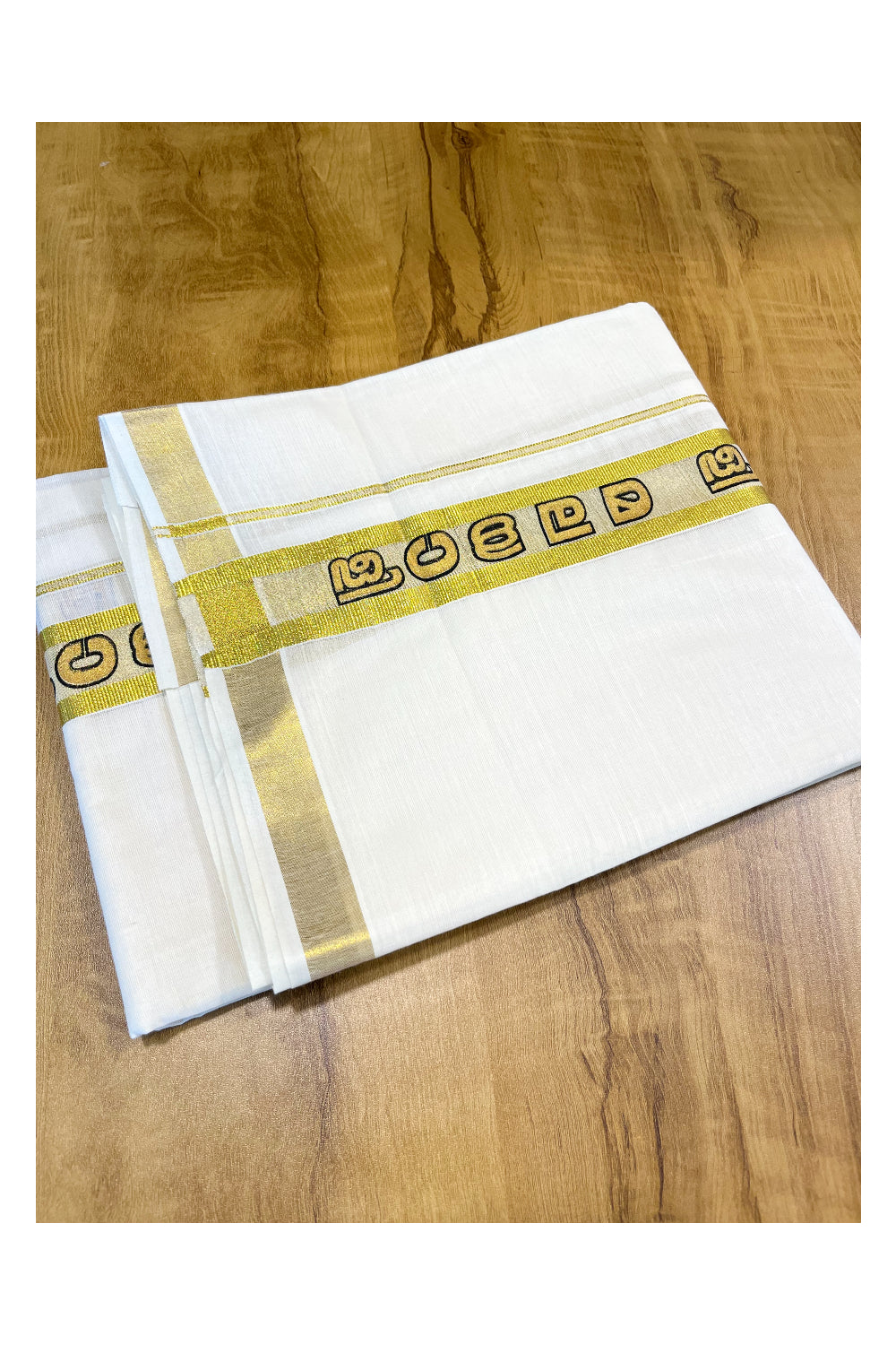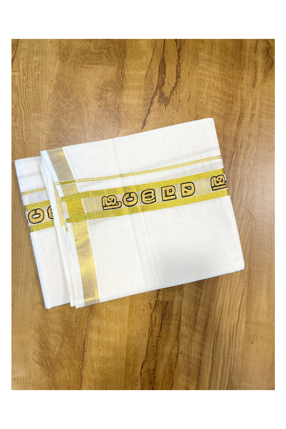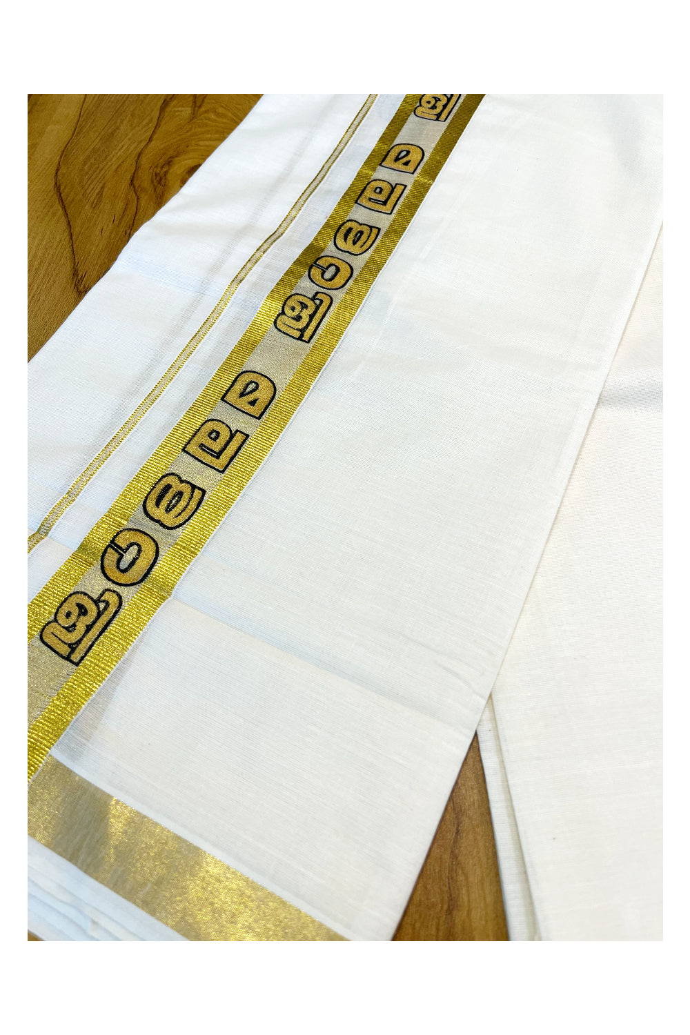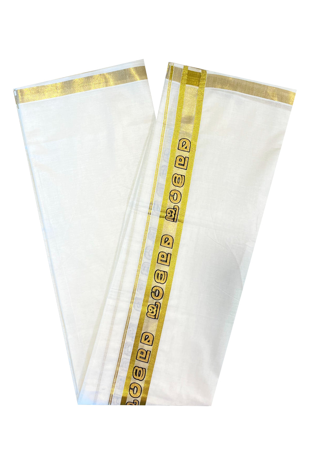 Kerala Pure Cotton Double Mundu with Malayali Letters on Kasavu Border(South Indian Kerala Dhoti)