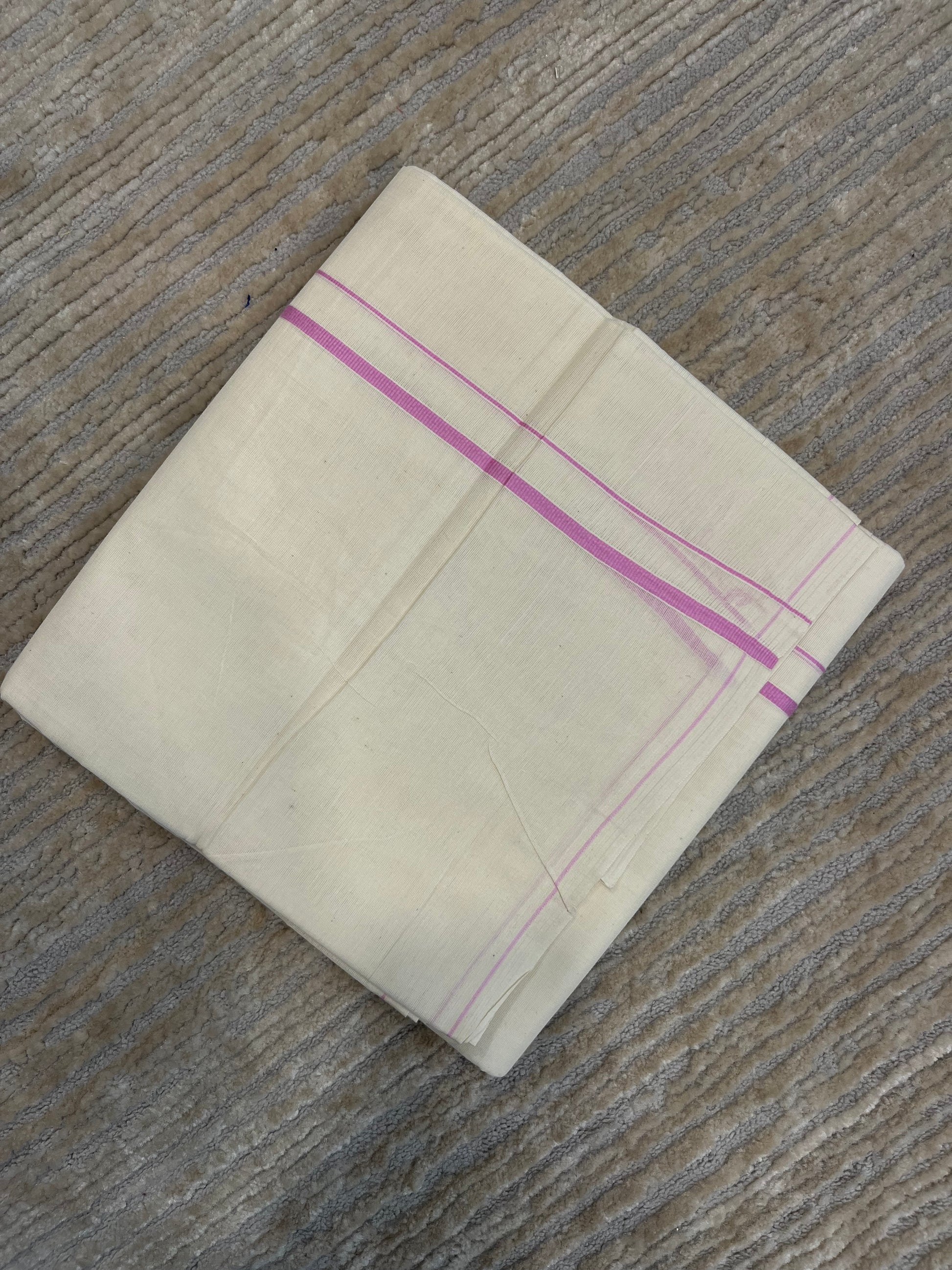 Pure Cotton Double Mundu with Pink Puliyilakkara (South Indian Kerala Dhoti)