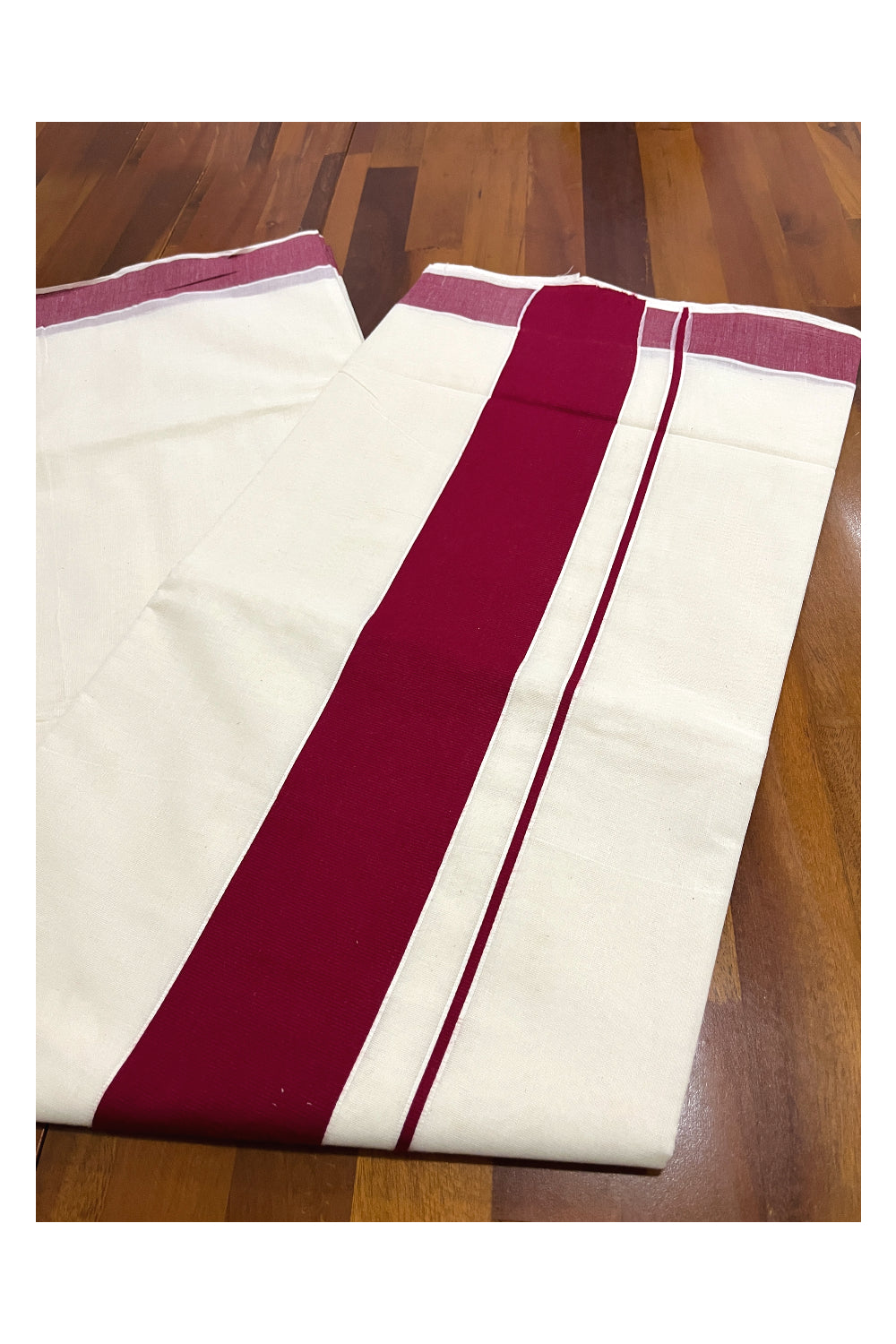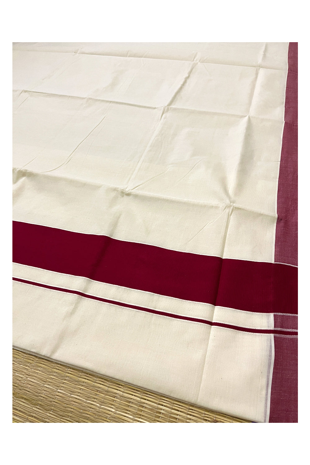 Plain off-white Kerala Saree with 2 inch Maroon border and 3 inch Pallu. Simple saree for everyday wear, may it be to the office or to the temple.