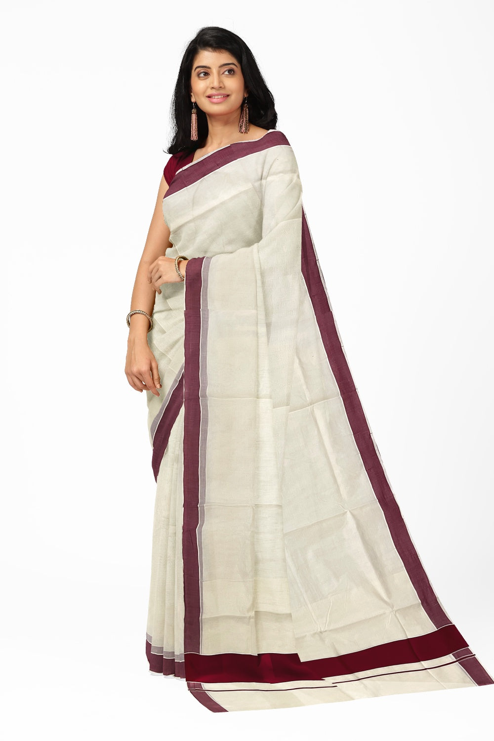 Pure Cotton Kerala Cotton Saree with Maroon Border