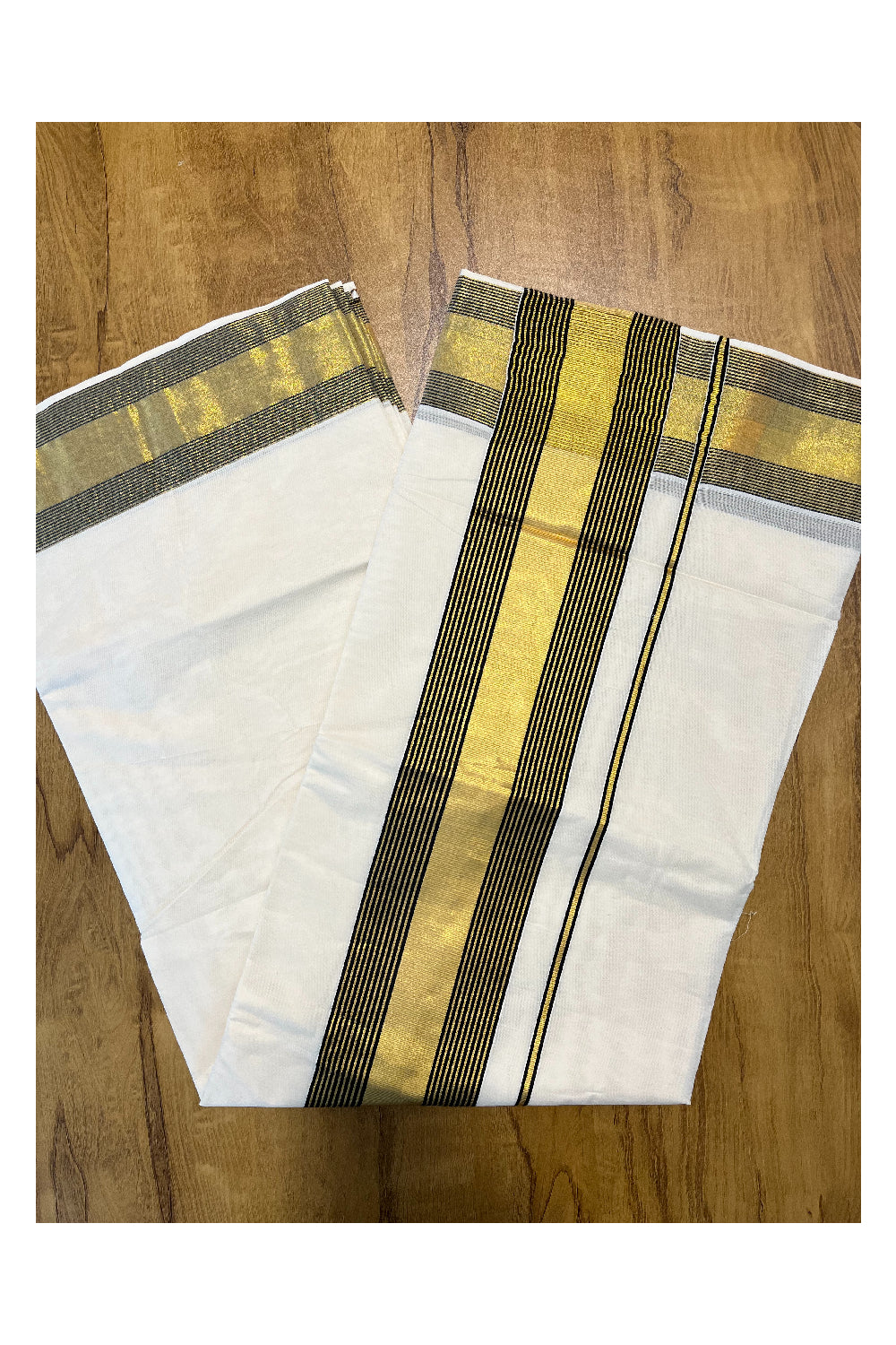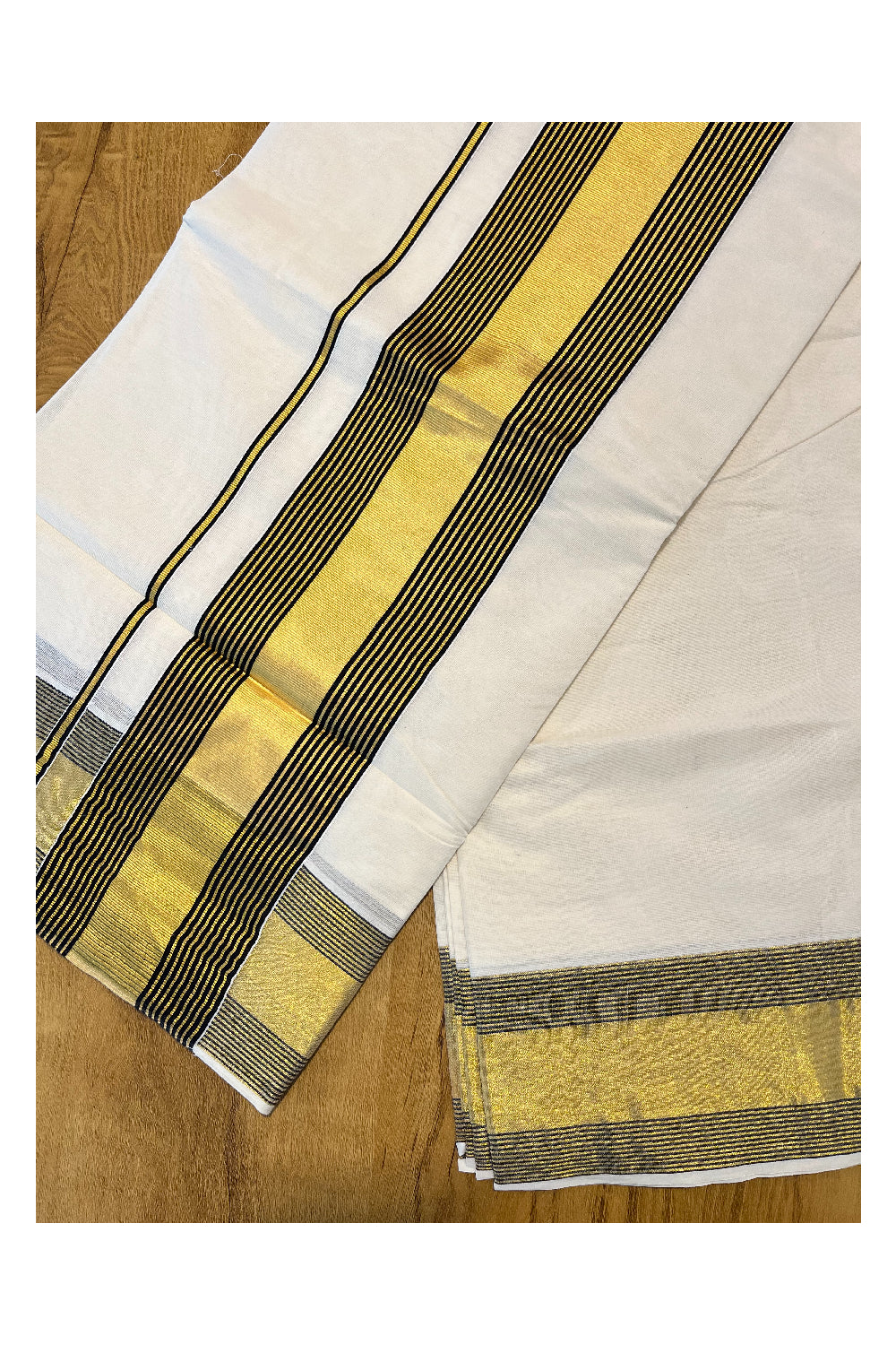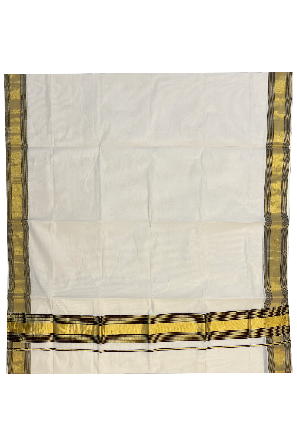 Pure Cotton Kerala Saree with Black and Kasavu Lines Border and Pallu