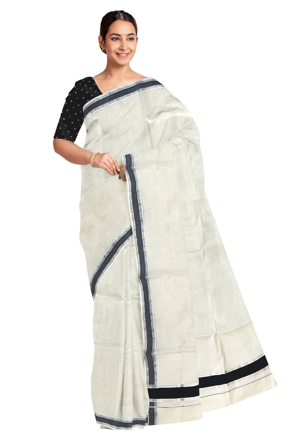 Pure Cotton Kerala Saree with Black and Silver Kasavu Border