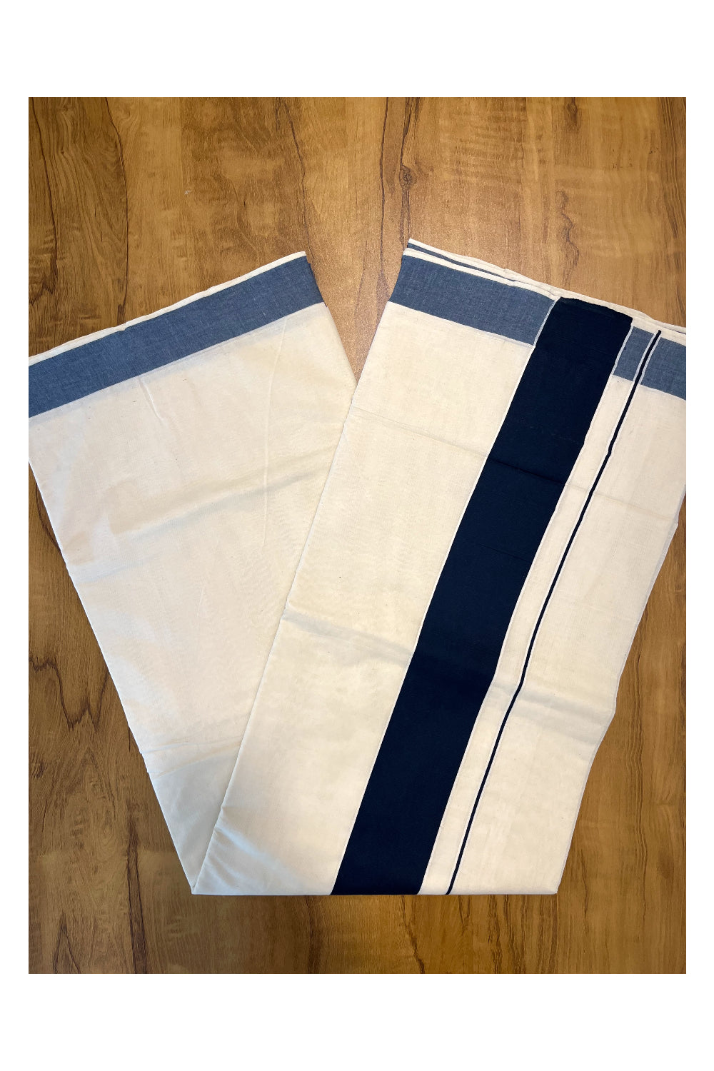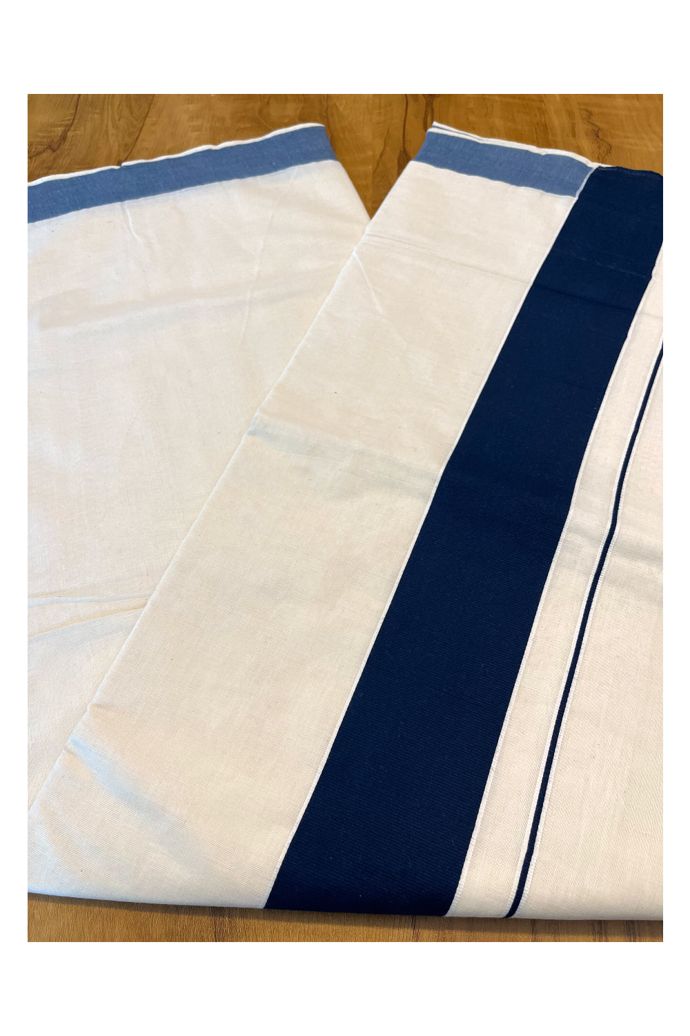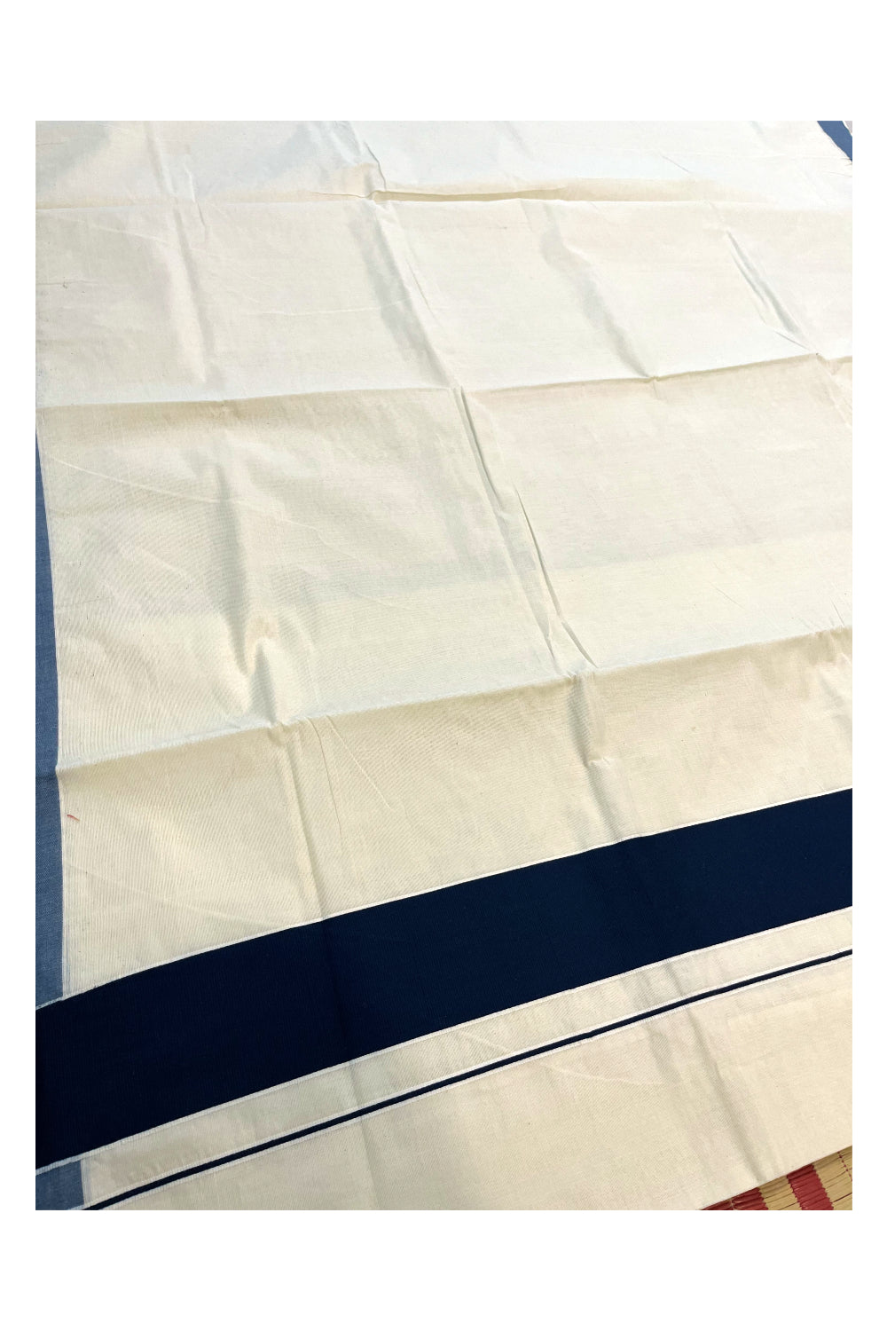 Pure Cotton Kerala Saree with Dark Teal Blue Plain Border
