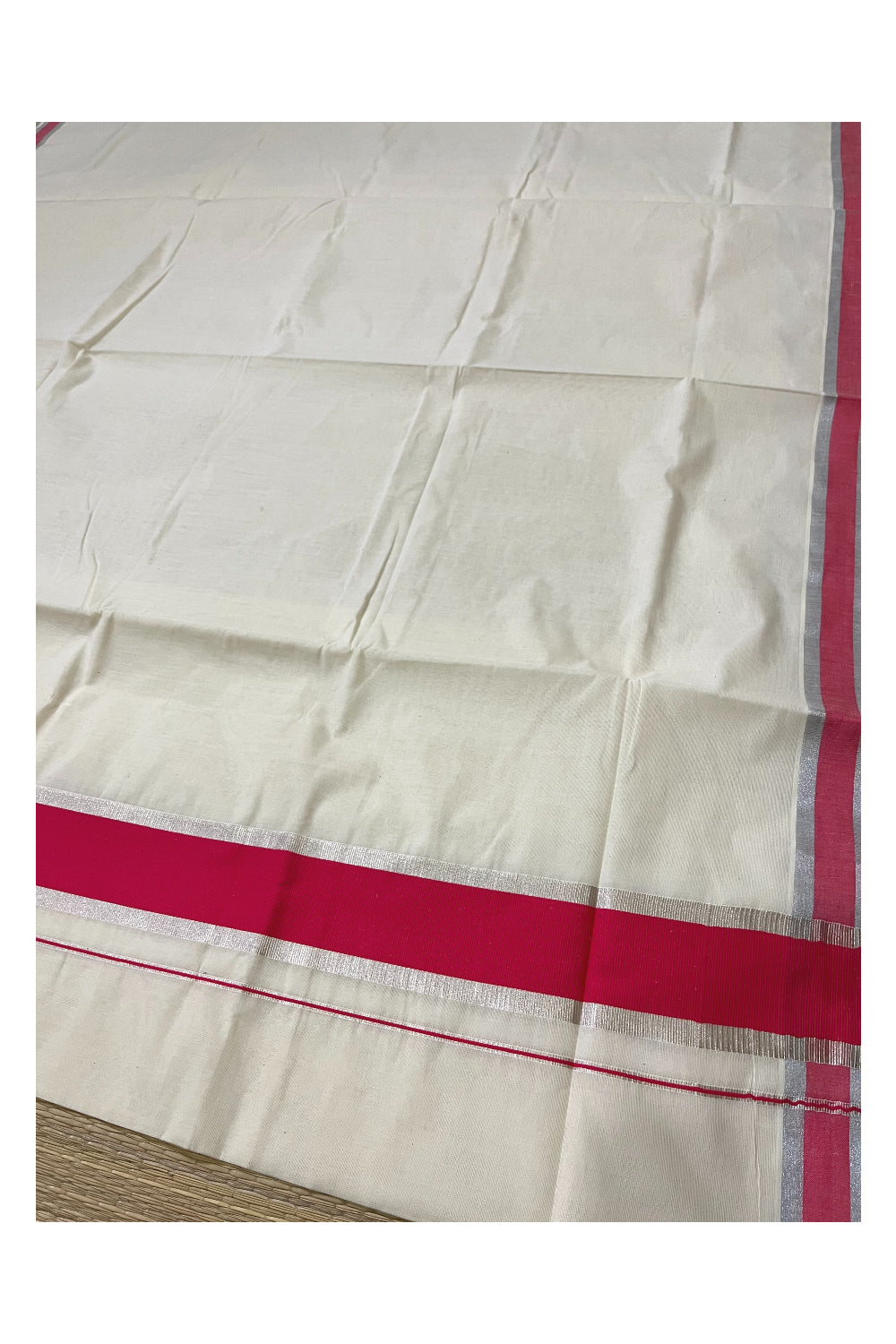 Pure Cotton Kerala Saree with Pink and Silver Kasavu Border
