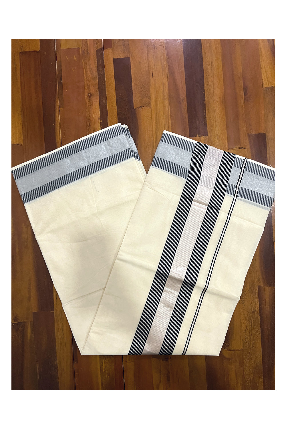 Pure Cotton Kerala Saree with Silver Kasavu and Black Line Border