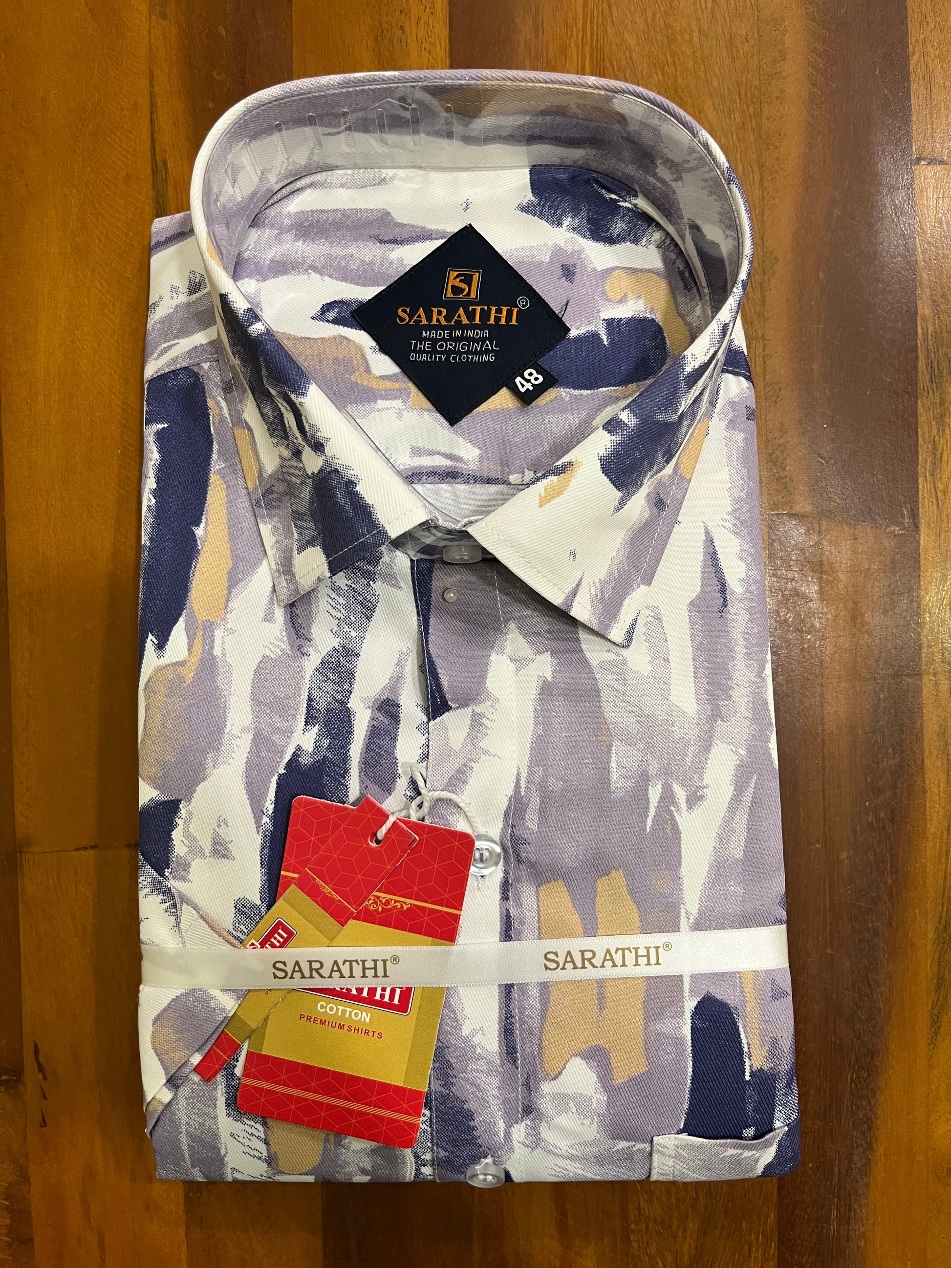 Pure Cotton Multi Coloured Lavender Printed Shirt (48 HS)