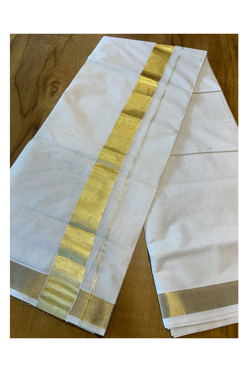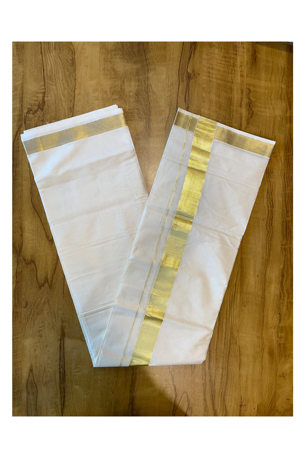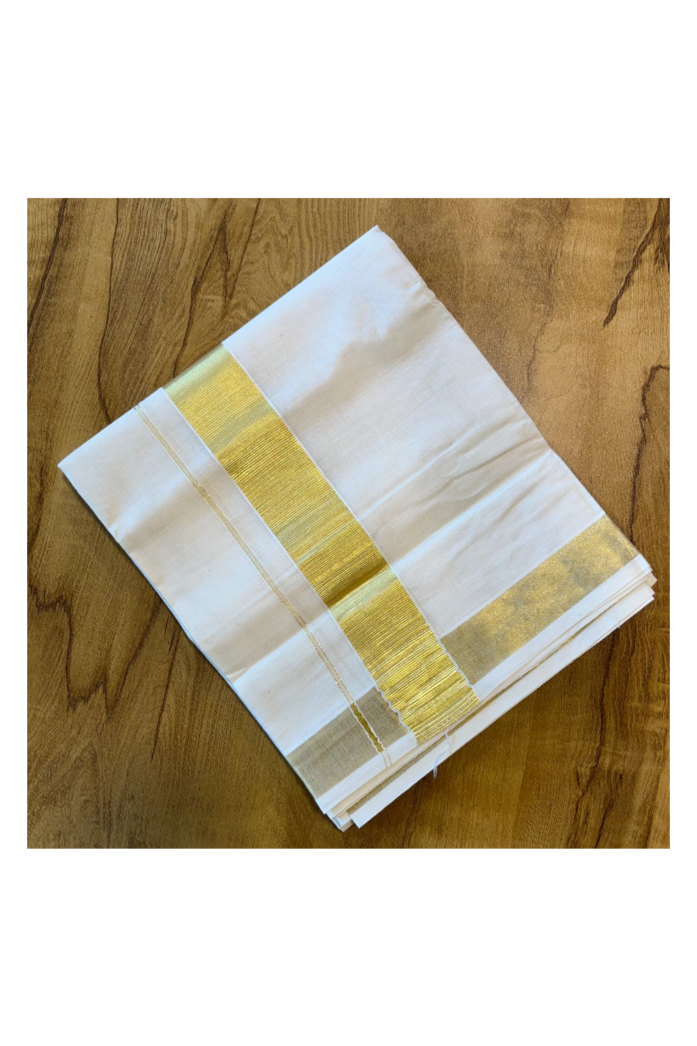 Pure Cotton Mundu with Golden Lines and Golden Border (South Indian Kerala Dhoti)