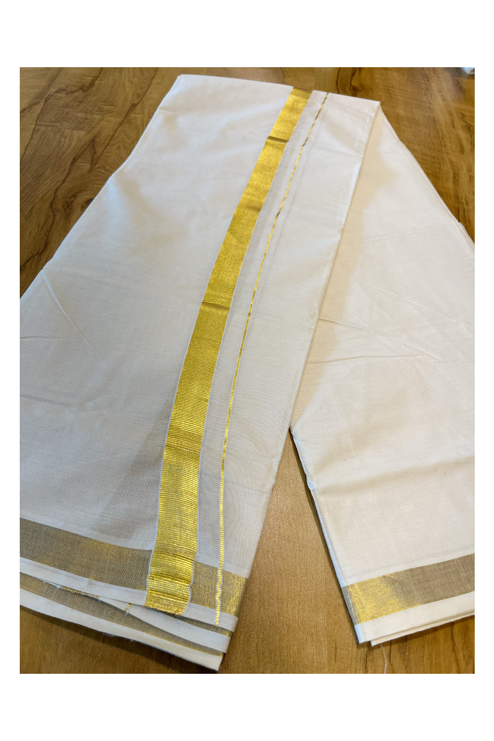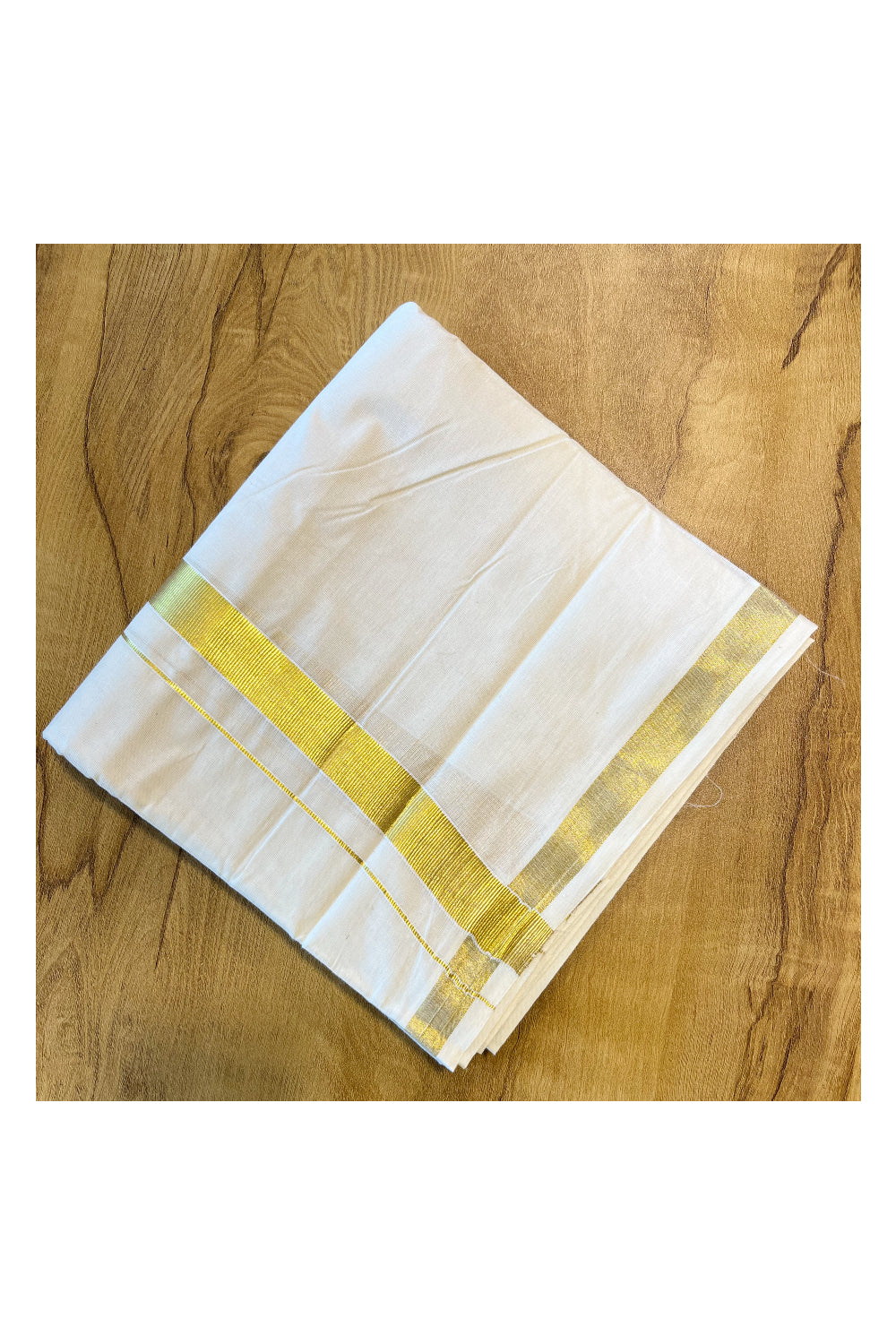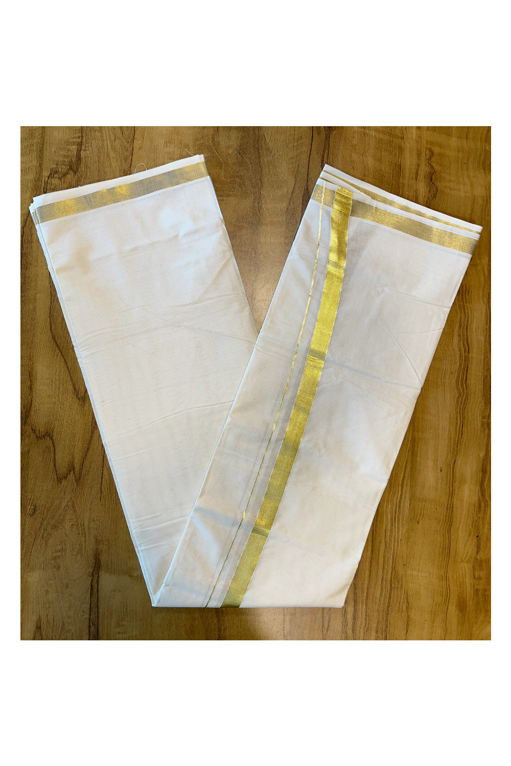 Pure Cotton Mundu with Golden Lines and Golden Border (South Indian Kerala Dhoti)