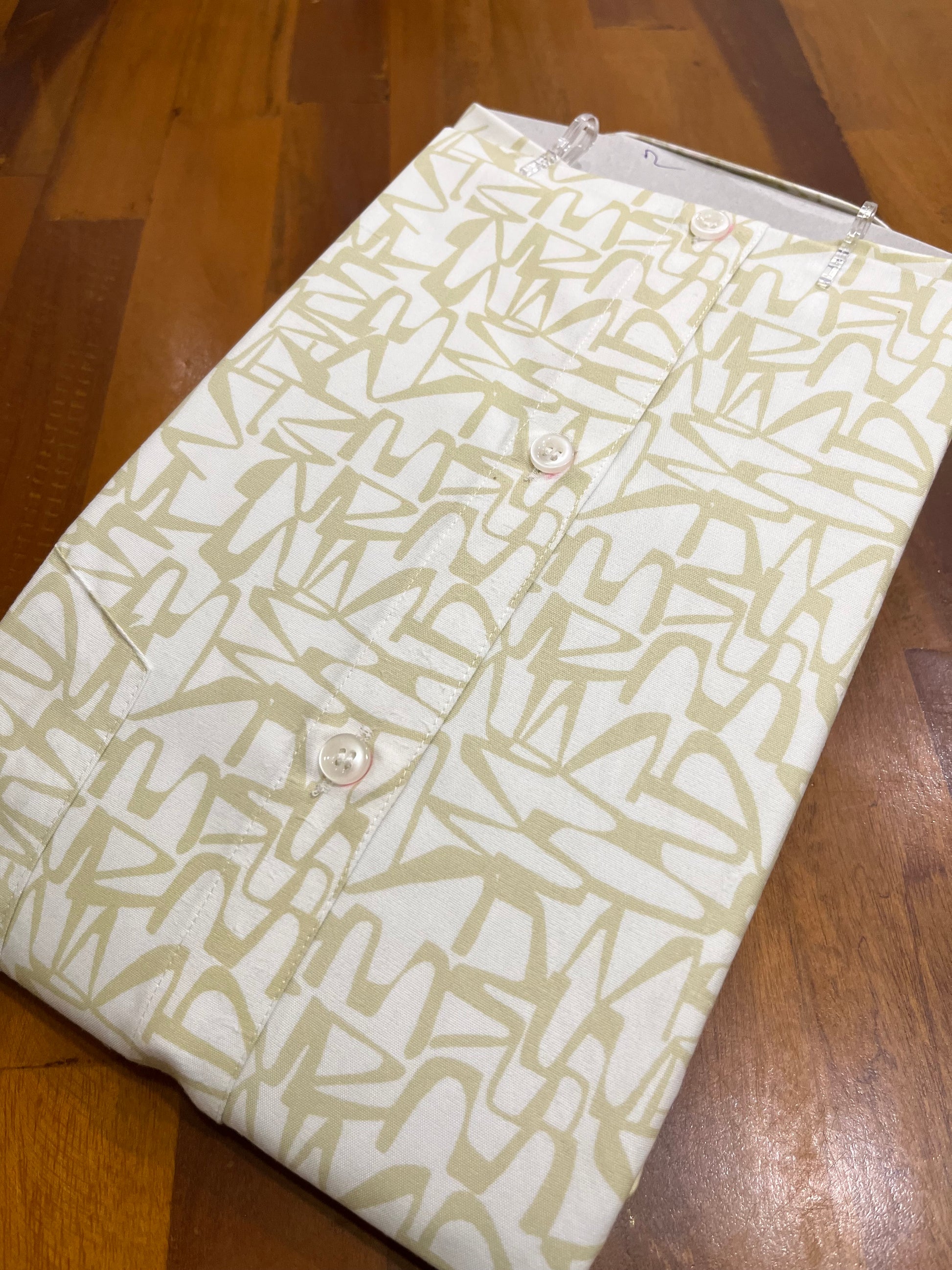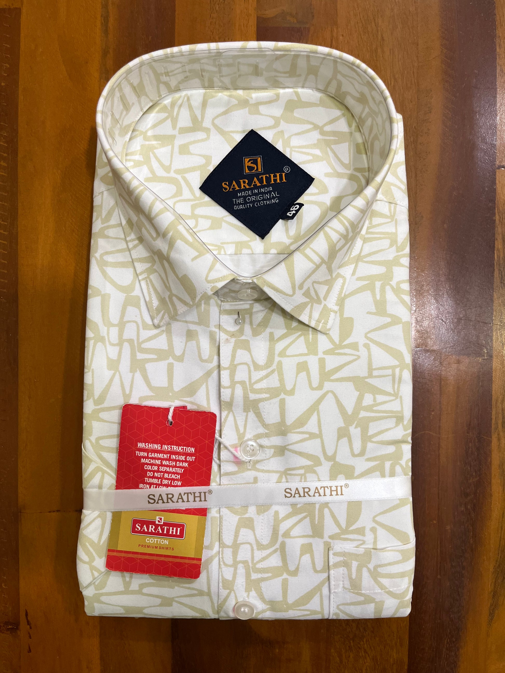 Pure Cotton Off White with Green Printed Shirt (46 HS)