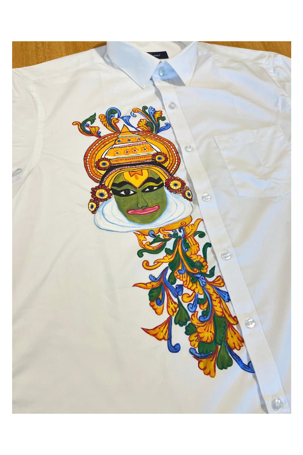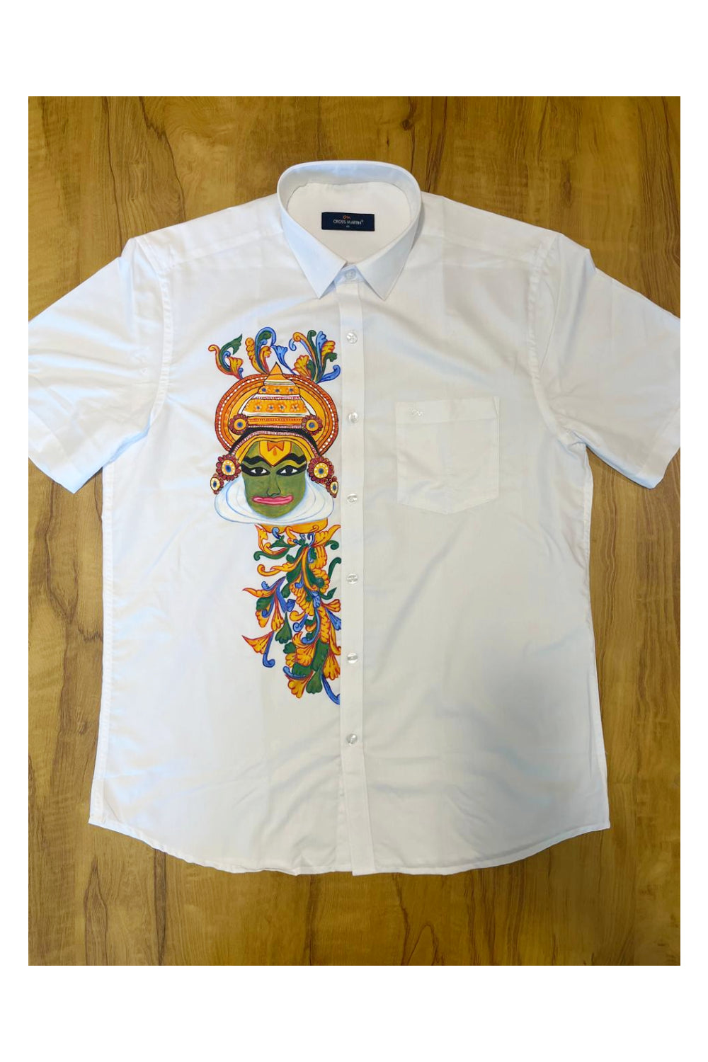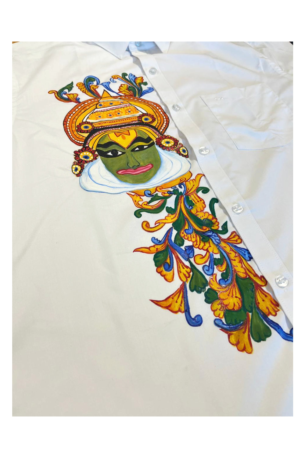Southloom Pure White Cotton Kathakali Mural Hand Painted Shirt (40 HS)