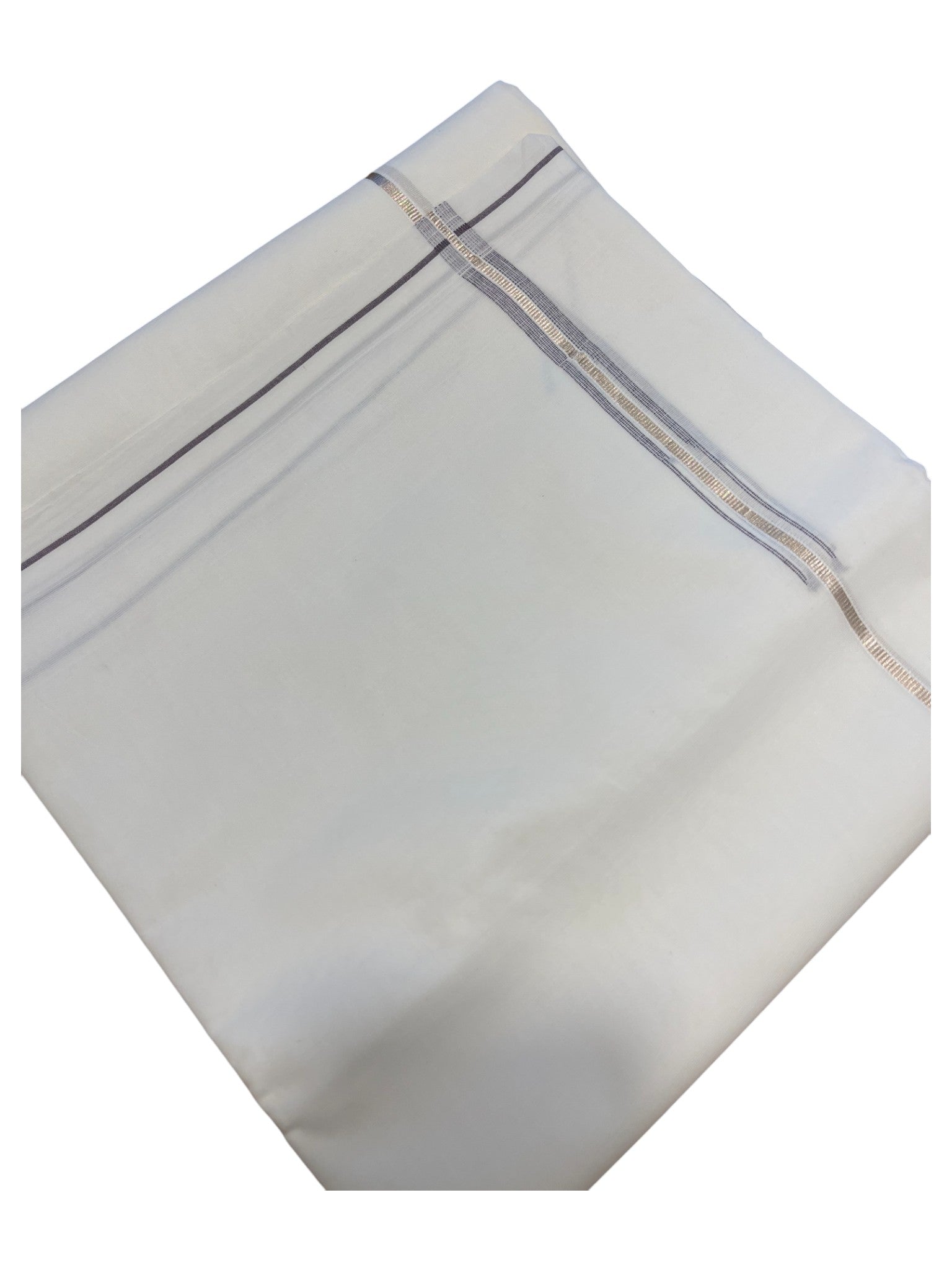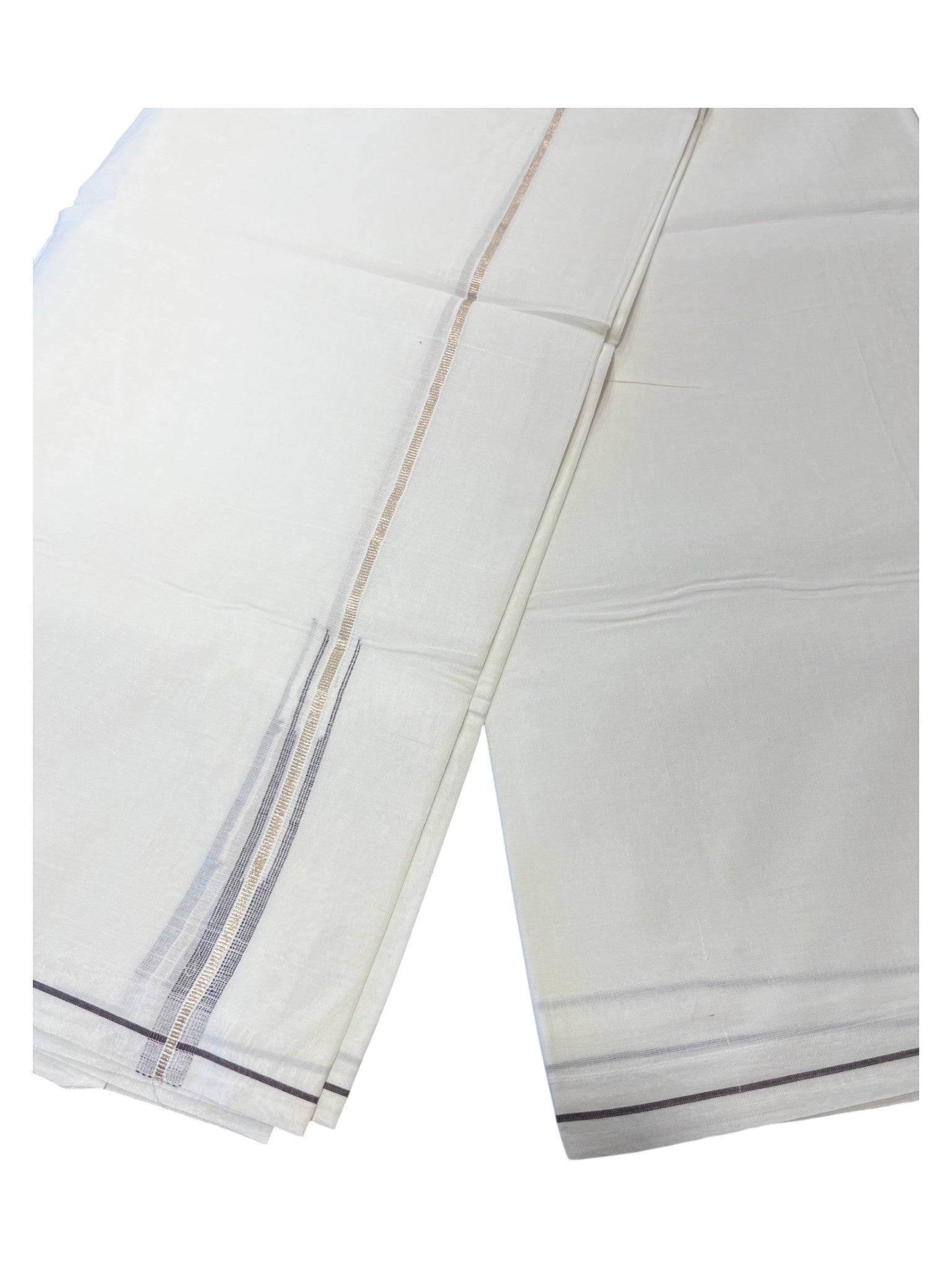 Pure White Cotton Double Mundu with Silver and Brown Chutti Kara (South Indian Dhoti)