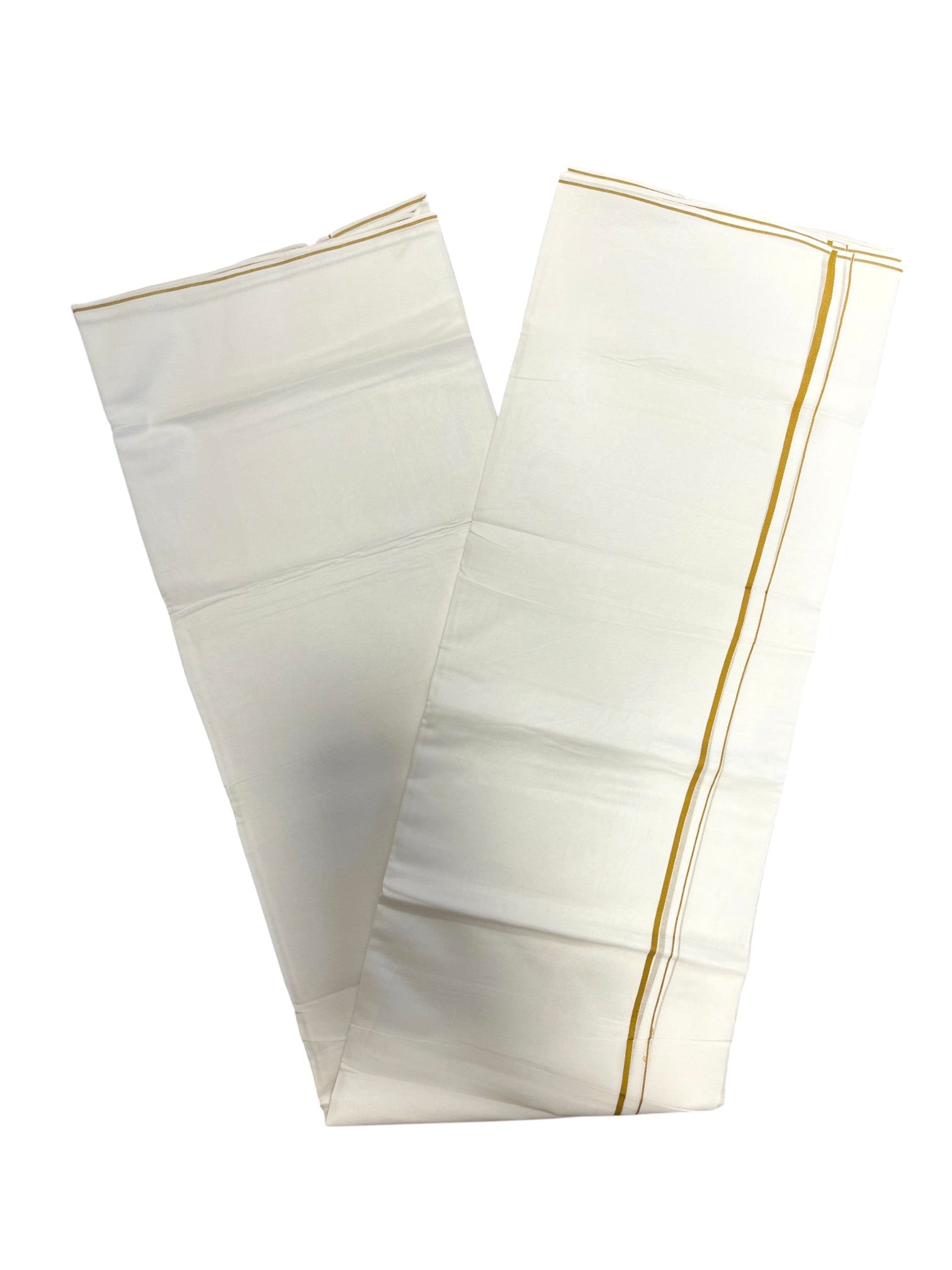 Pure White Cotton Double Mundu with Yellow PuliyilaKara (South Indian Dhoti)