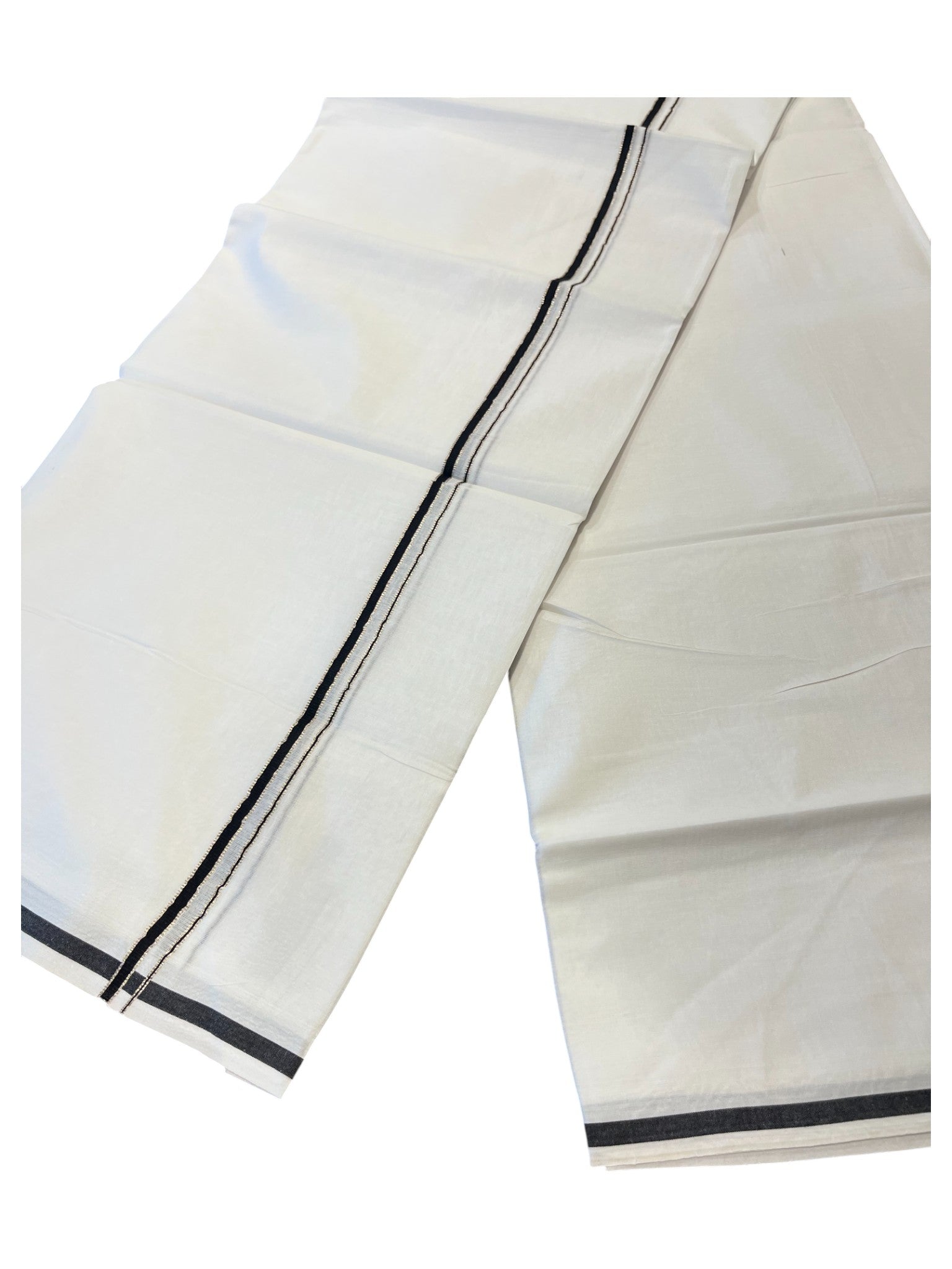 Pure White Cotton Double Mundu with Silver Black Kara (South Indian Dhoti)