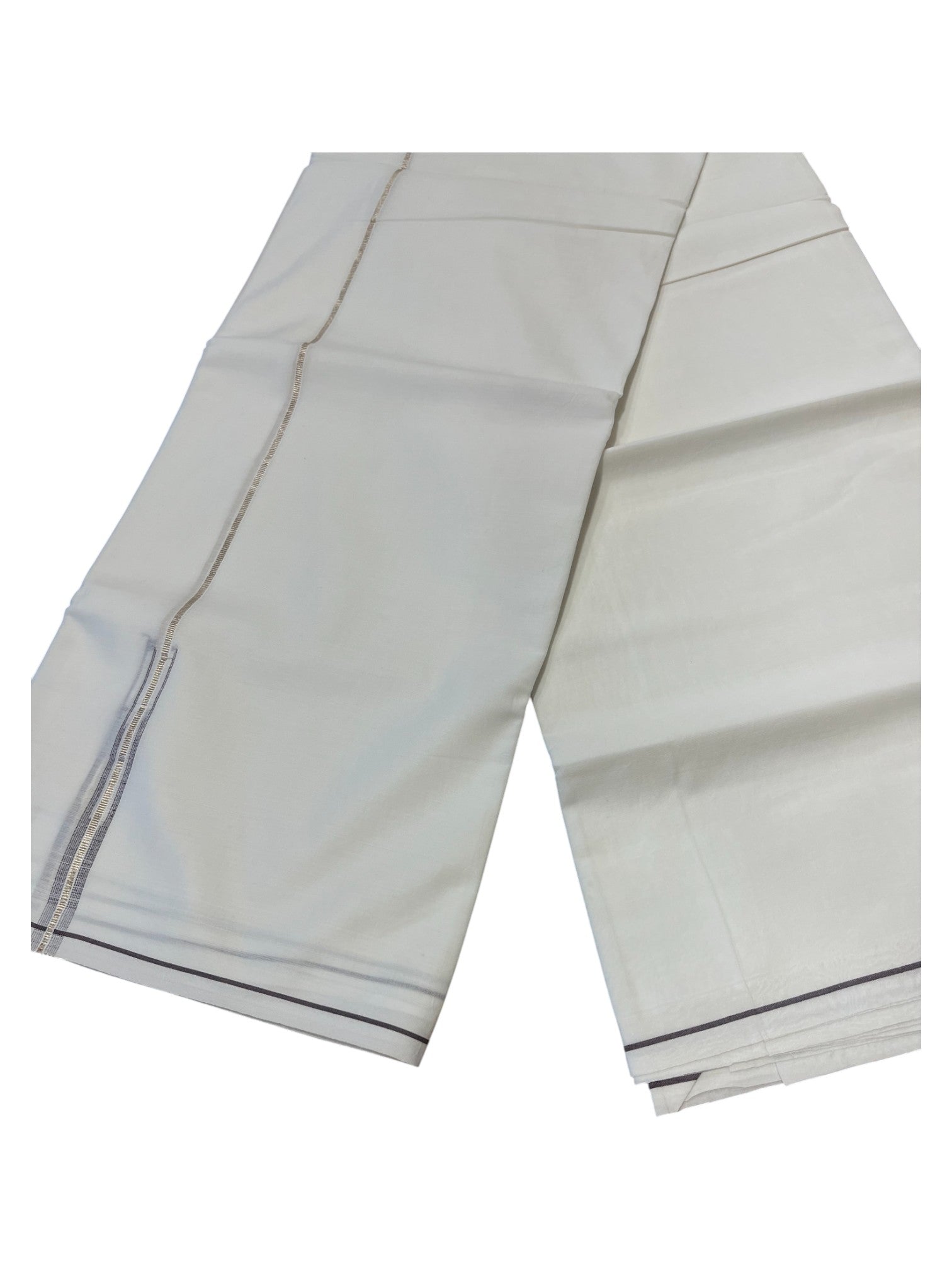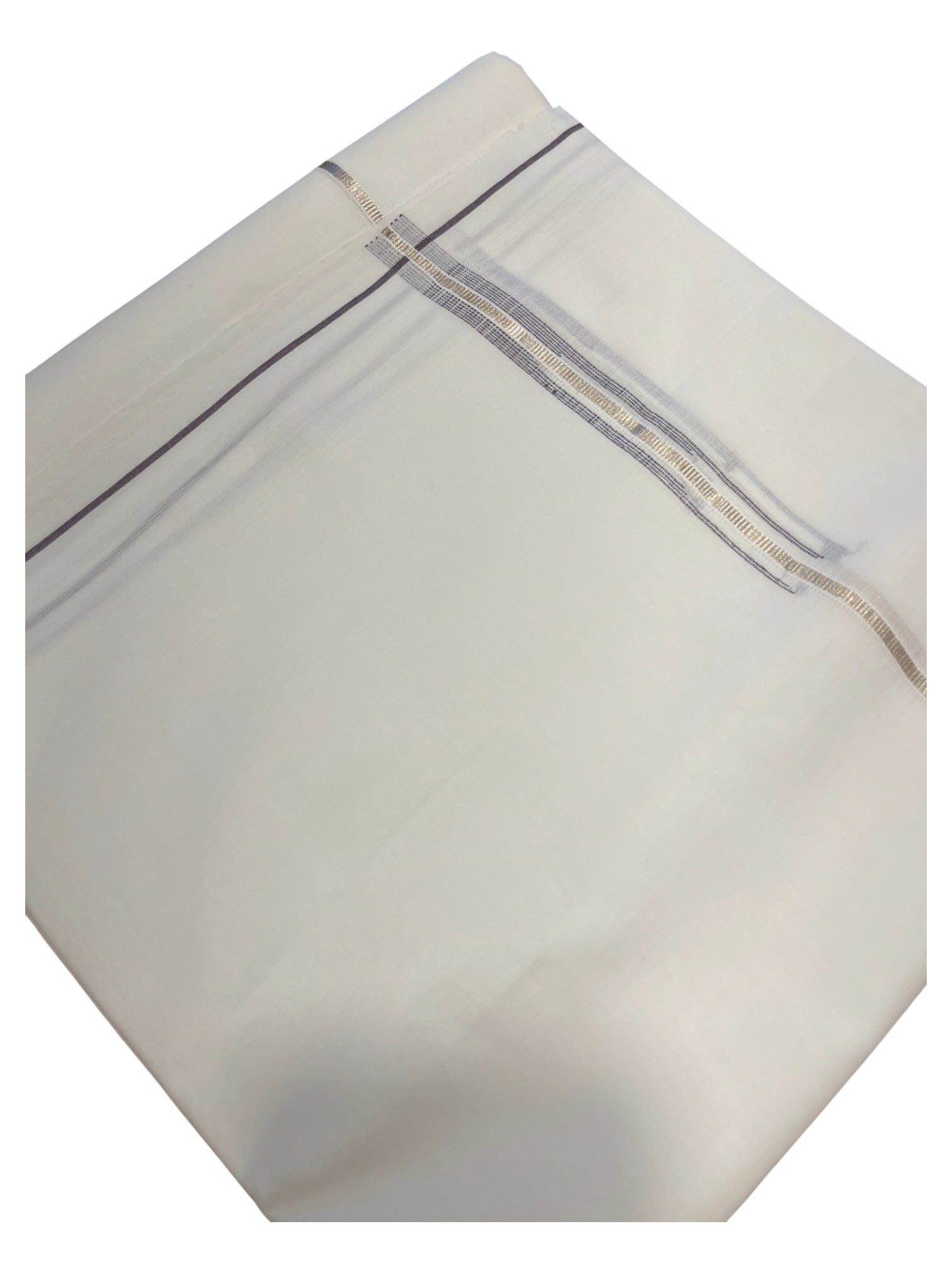 Pure White Cotton Double Mundu with Silver Chutti Kara (South Indian Dhoti)