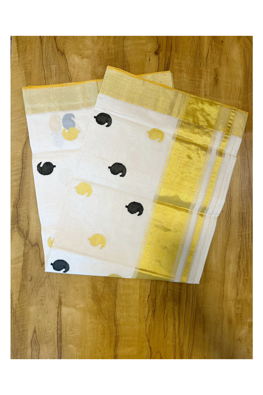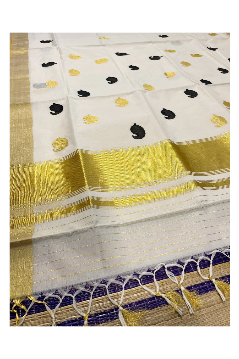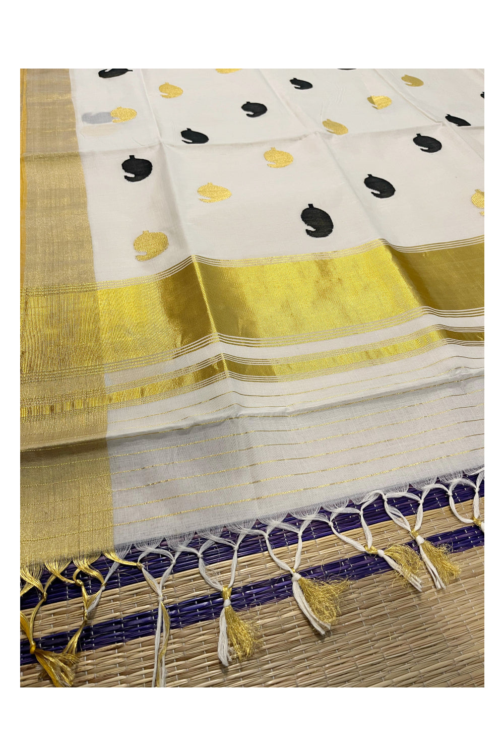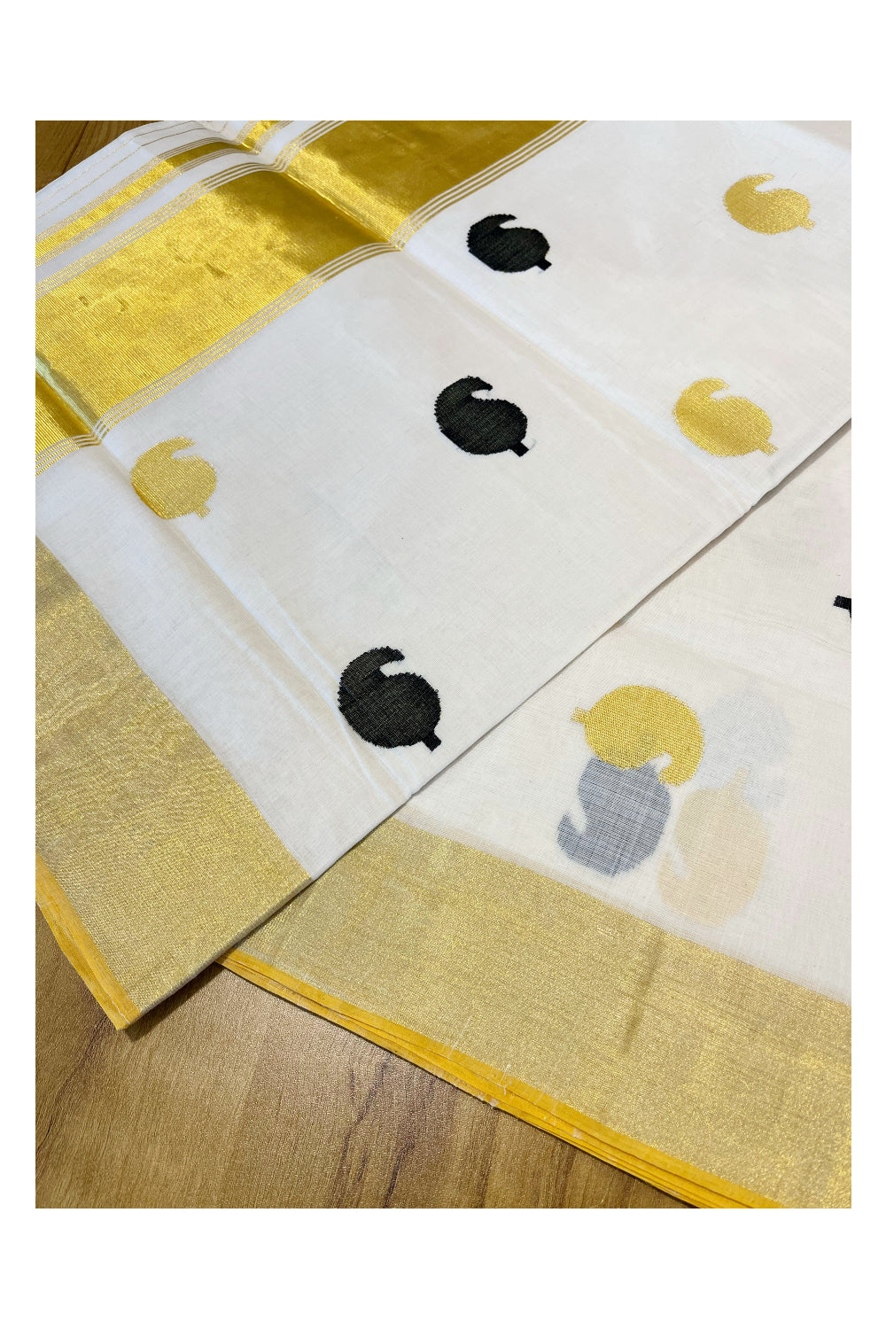 Southloom Balaramapuram Unakkupaavu Handloom Kasavu Saree with Paisley / Manga Design Woven in Black and Golden Kasavu