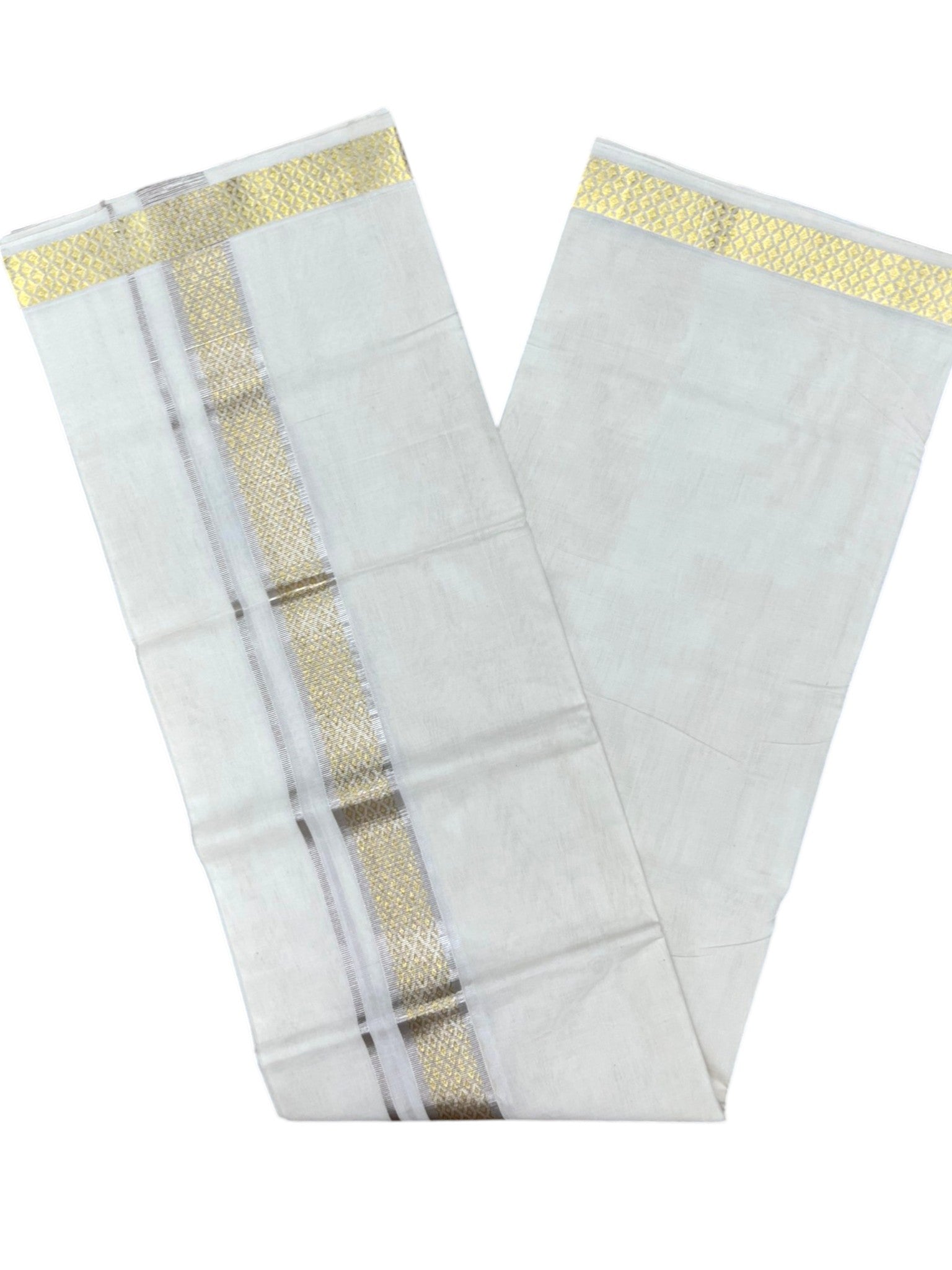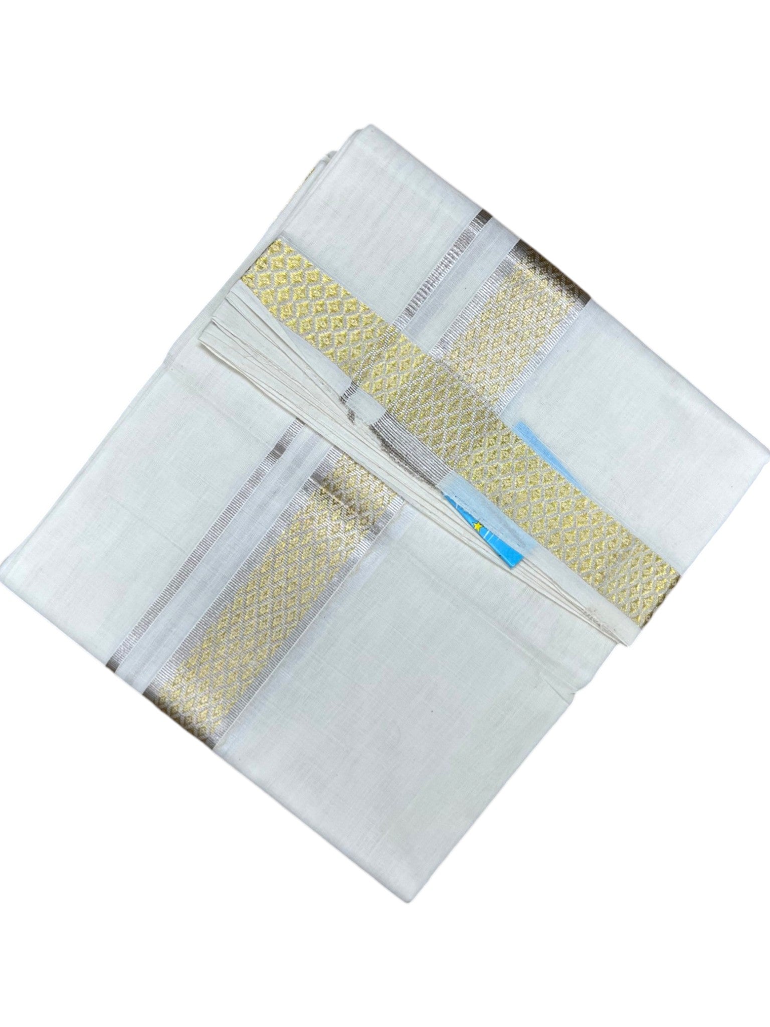 Southloom Balaramapuram Unakkupaavu Premium Handloom Cotton Double Mundu with Gold Kasavu and Silver Border
