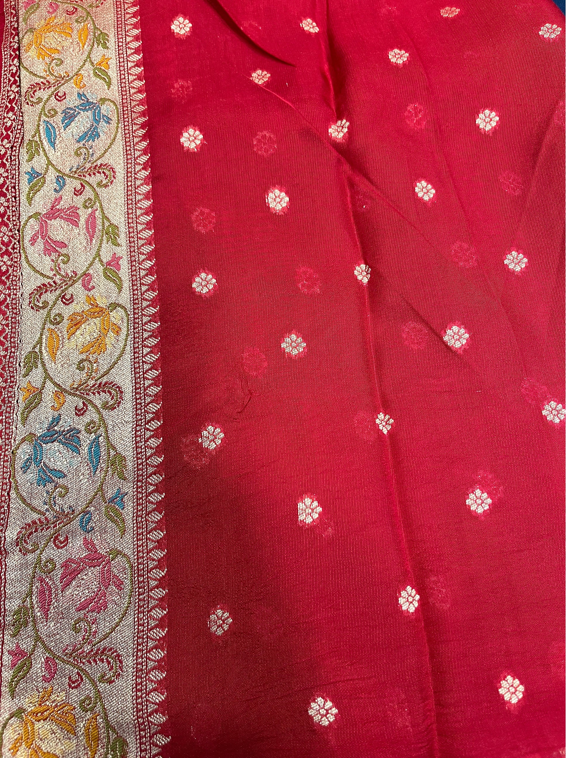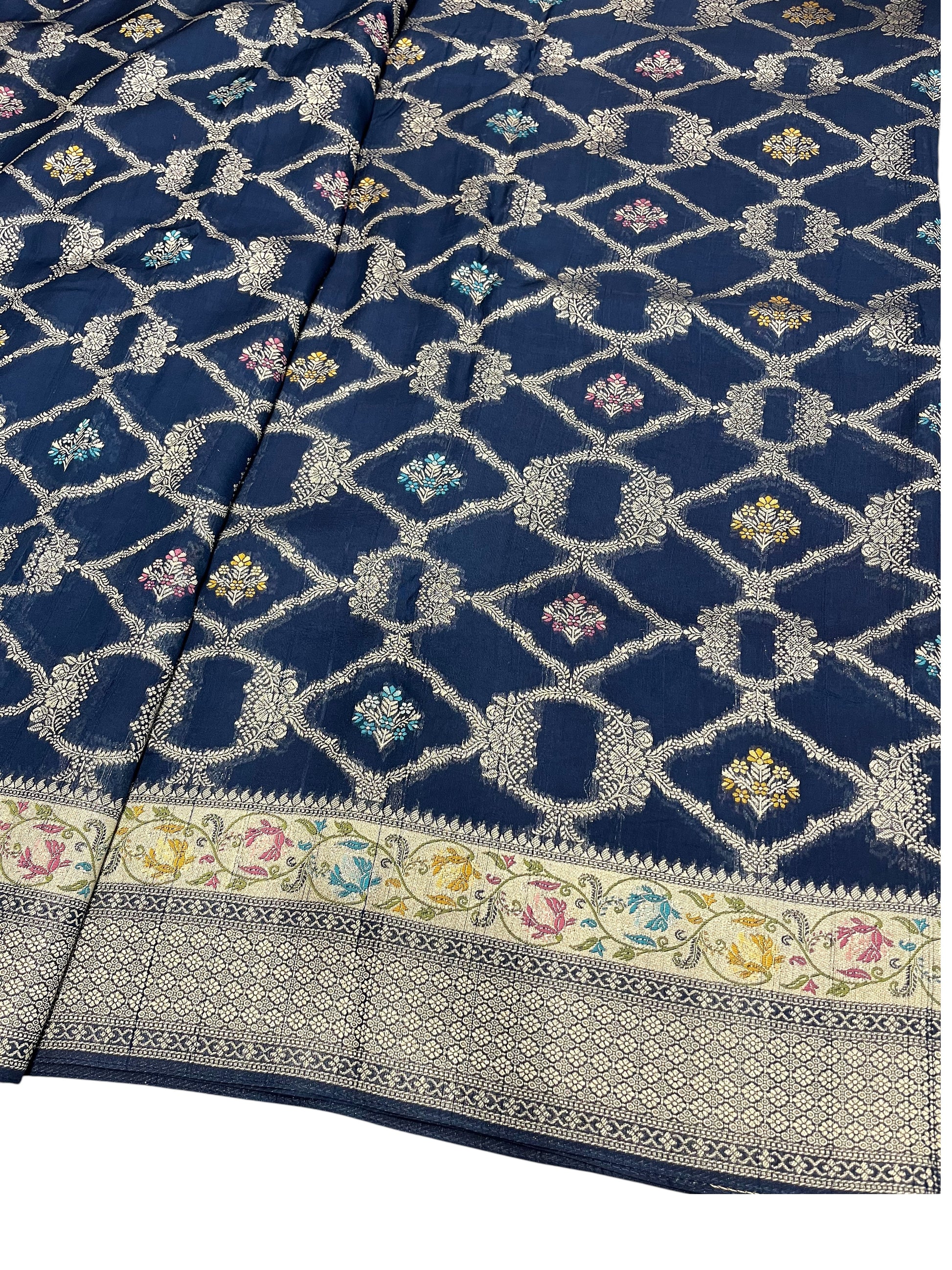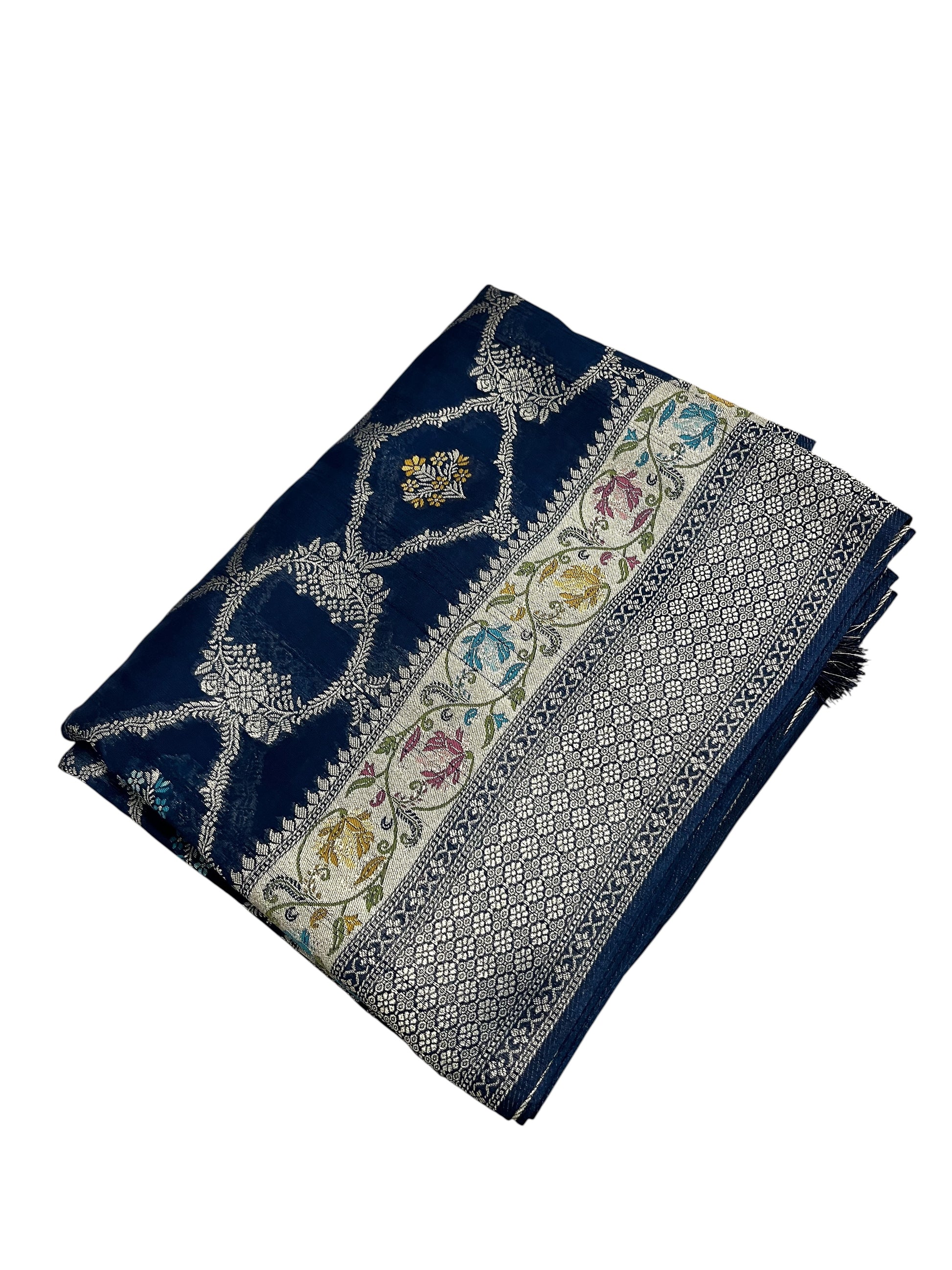 Southloom Banarasi Silk Saree with Woven Work on Body and Borders (Blue & Magenta)