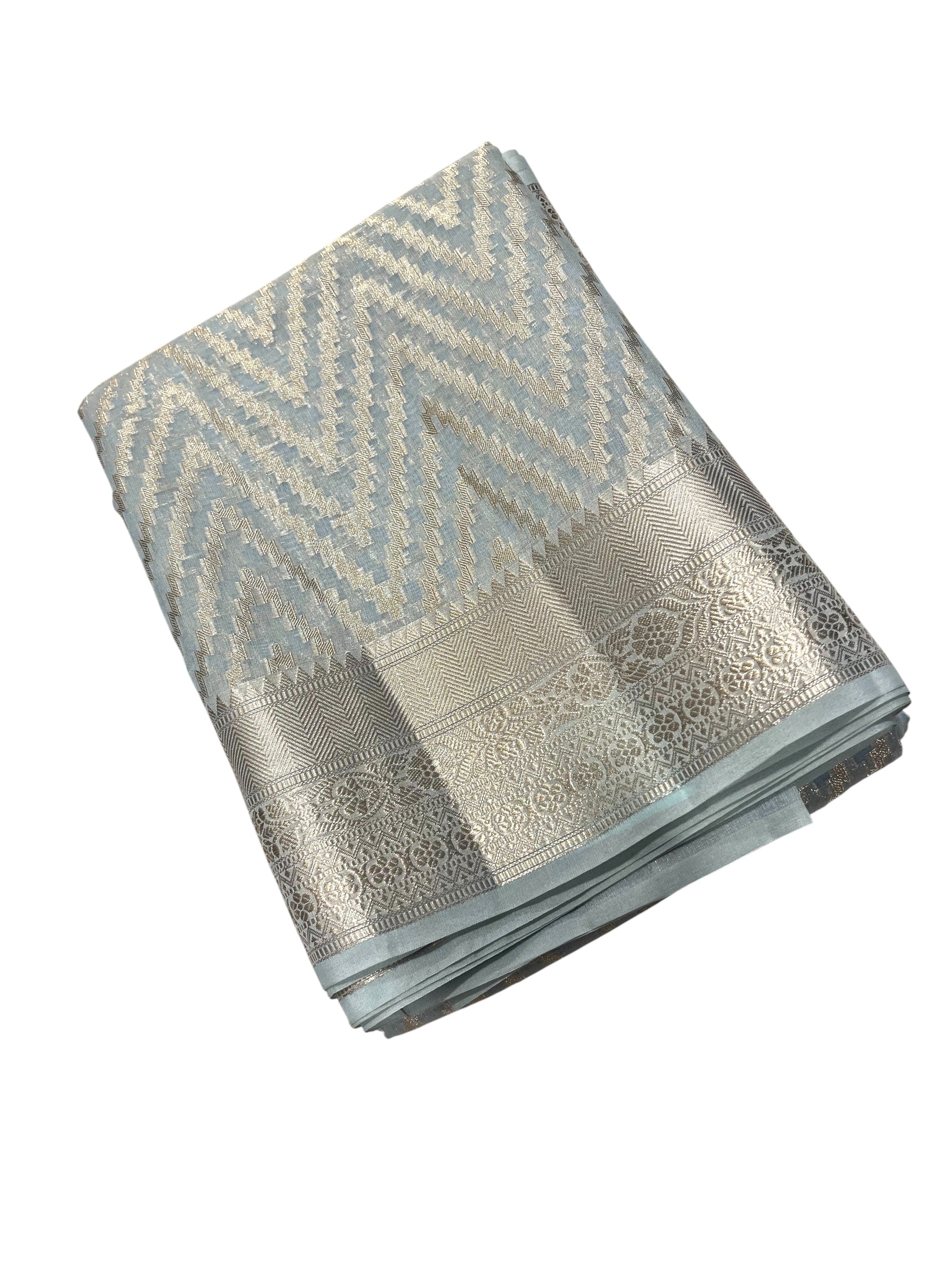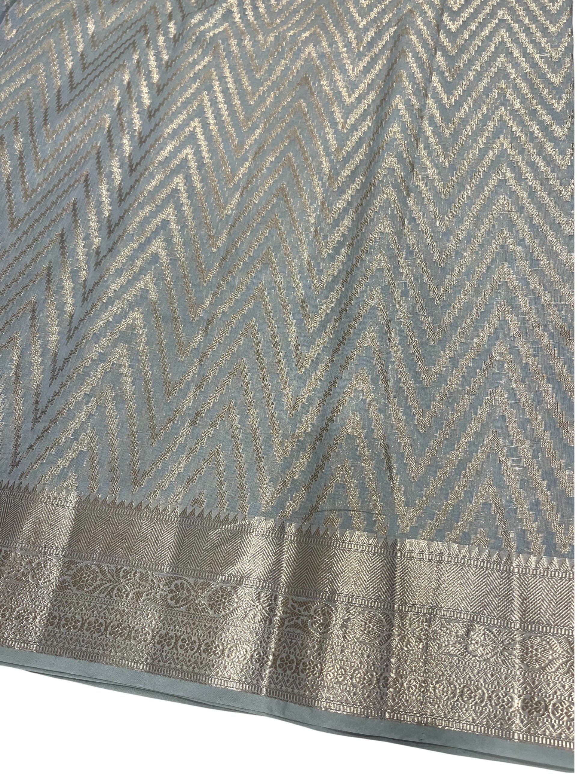 Southloom Cotton Banarasi Silk Saree with Woven Work on Body and Borders (Gray)
