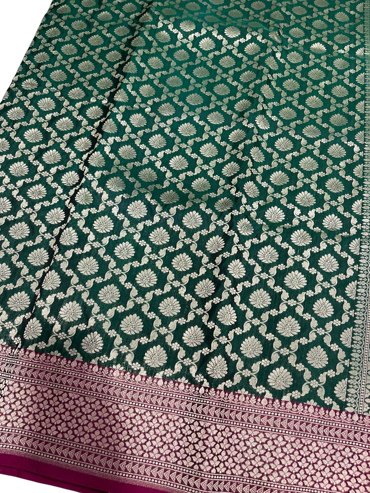 Southloom Banarasi Silk Saree with Woven Work on Body and Borders (Green & Magenta)
