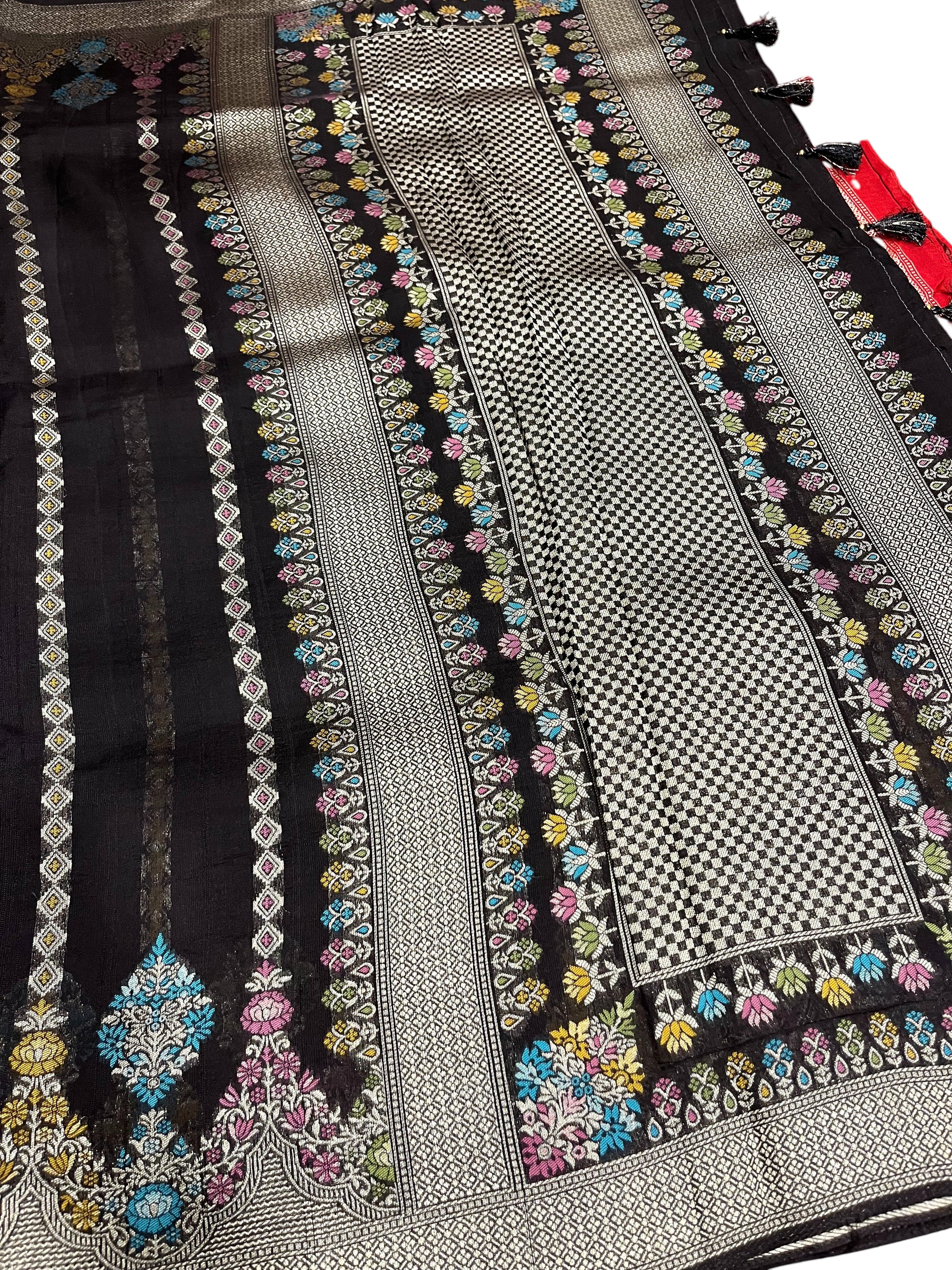 Southloom Banarasi Silk Saree with Woven Work on Body and Borders (Black & Brick Red)