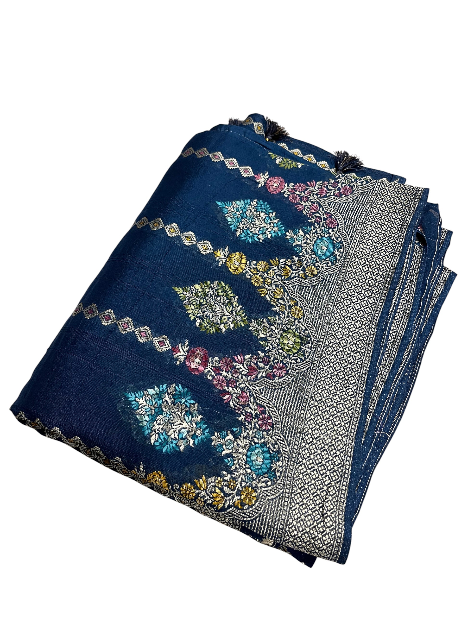 Southloom Banarasi Silk Saree with Woven Work on Body and Borders (Magenta & Blue)