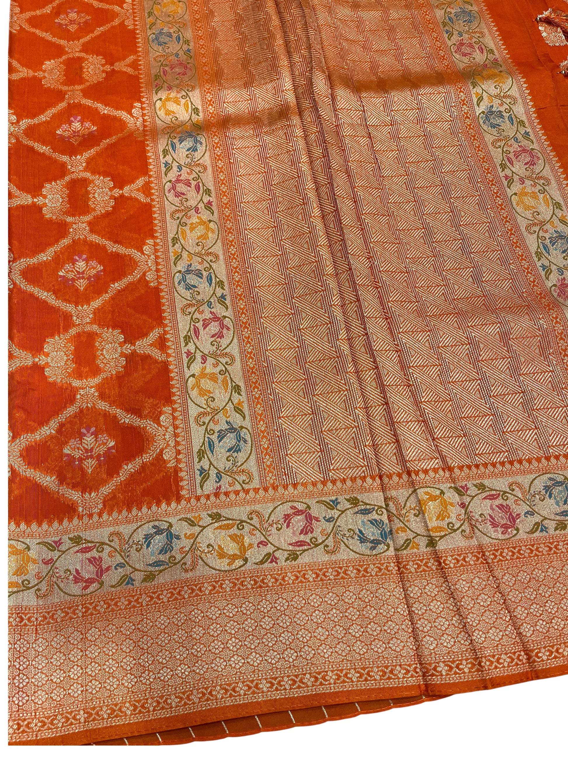 Southloom Banarasi Silk Saree with Woven Work on Body and Borders (Orange & Violet)