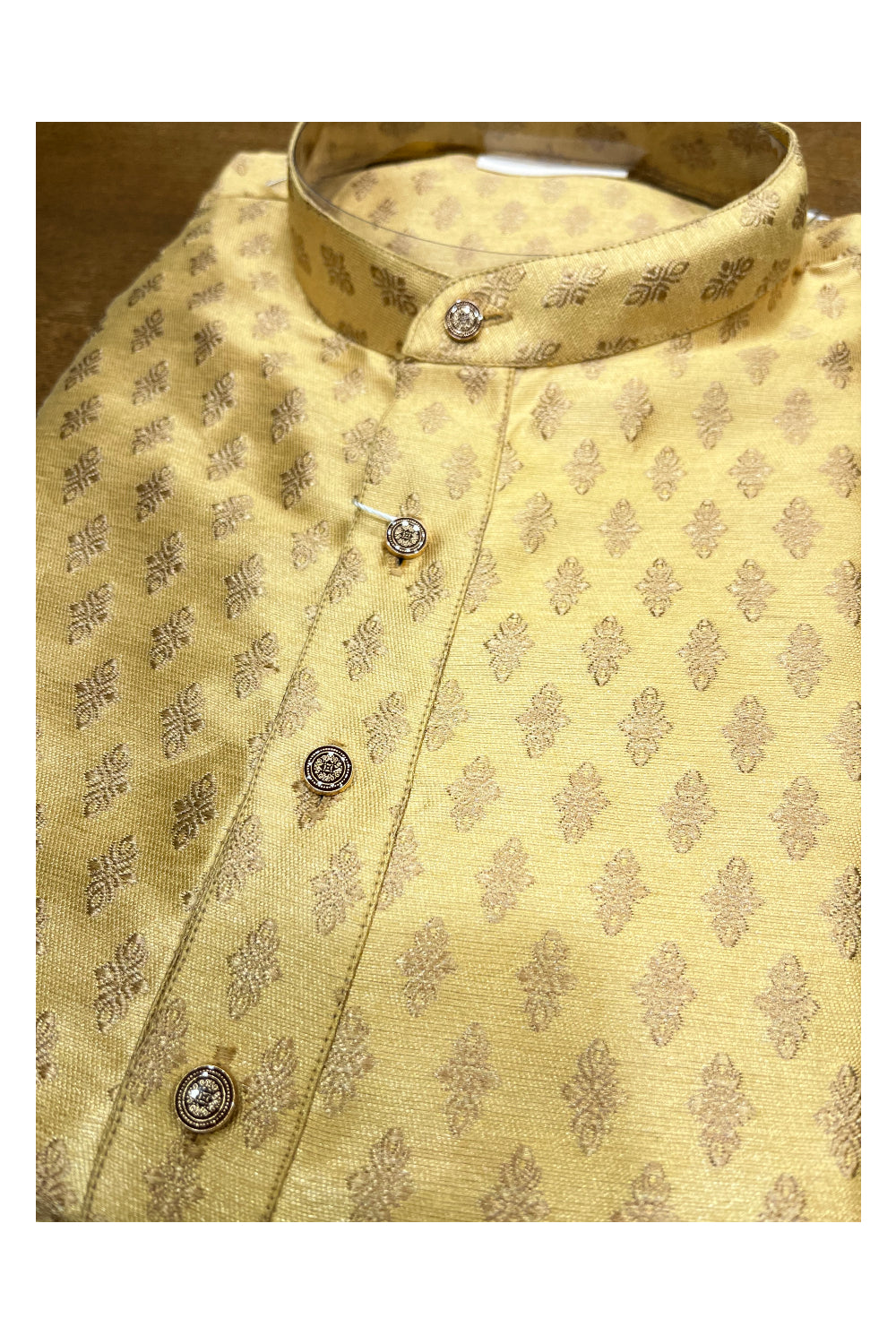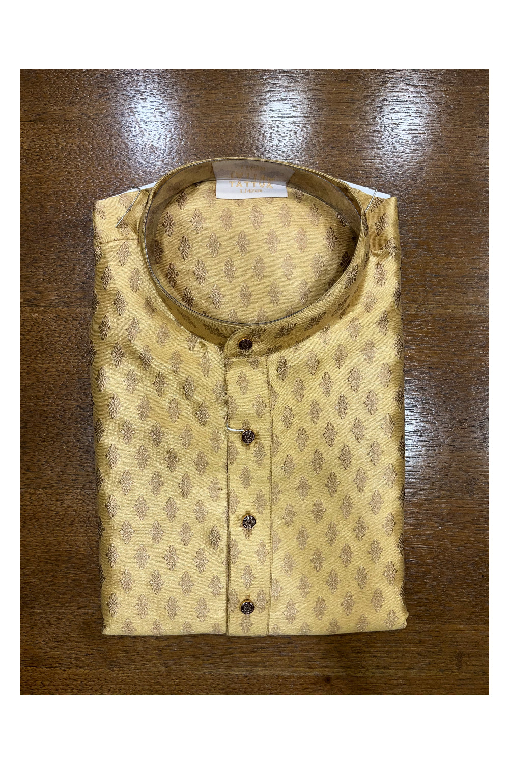 Southloom Beige Colour Woven Patterns Semi Silk Short Kurta for Men