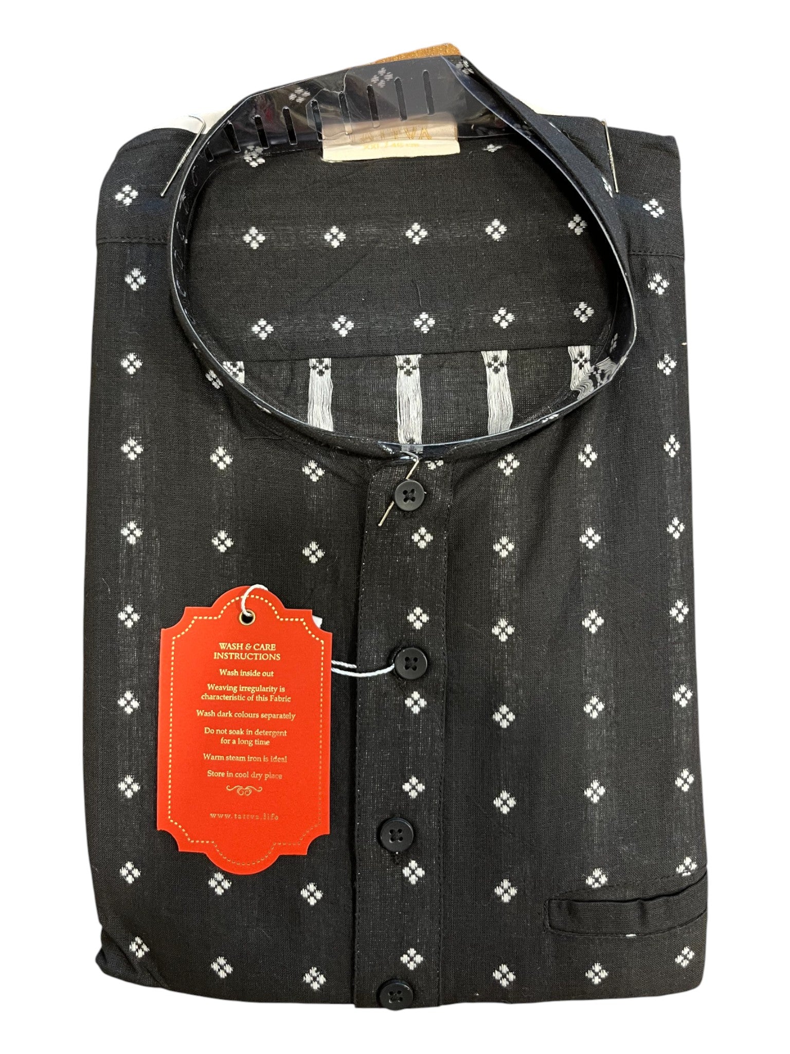 Southloom Black Woven Patterns Semi Silk Short Kurta for Men
