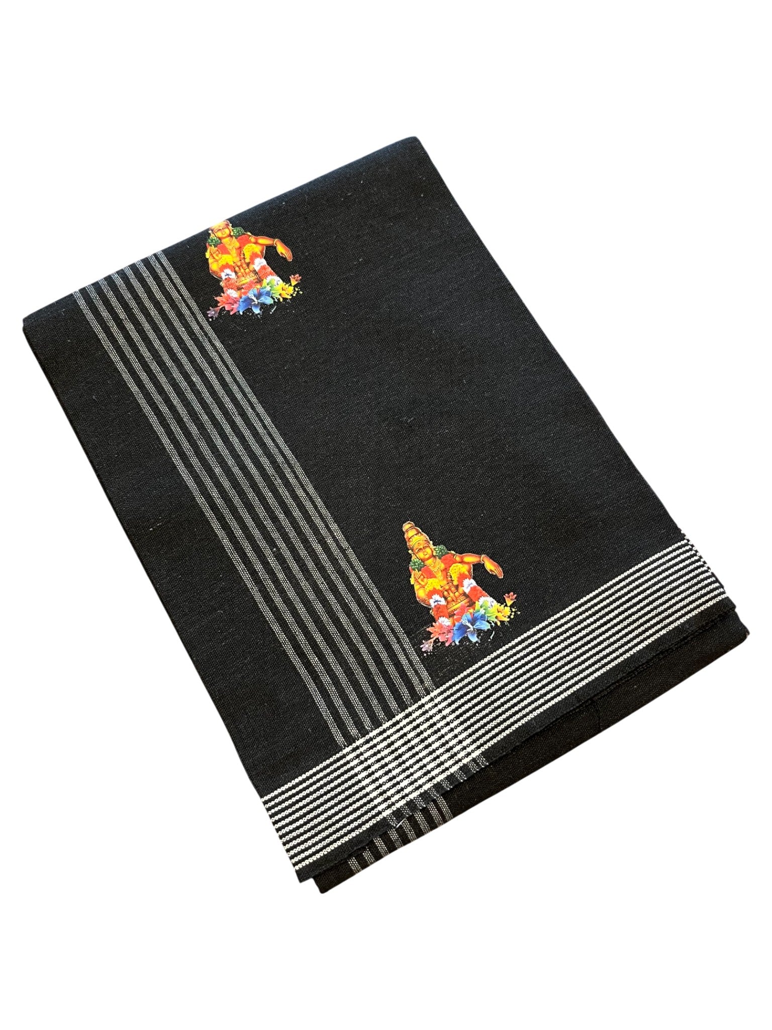Southloom Black Printed Ayyapan Single Mundu / Otta Mundu (South Indian Kerala Dhoti)