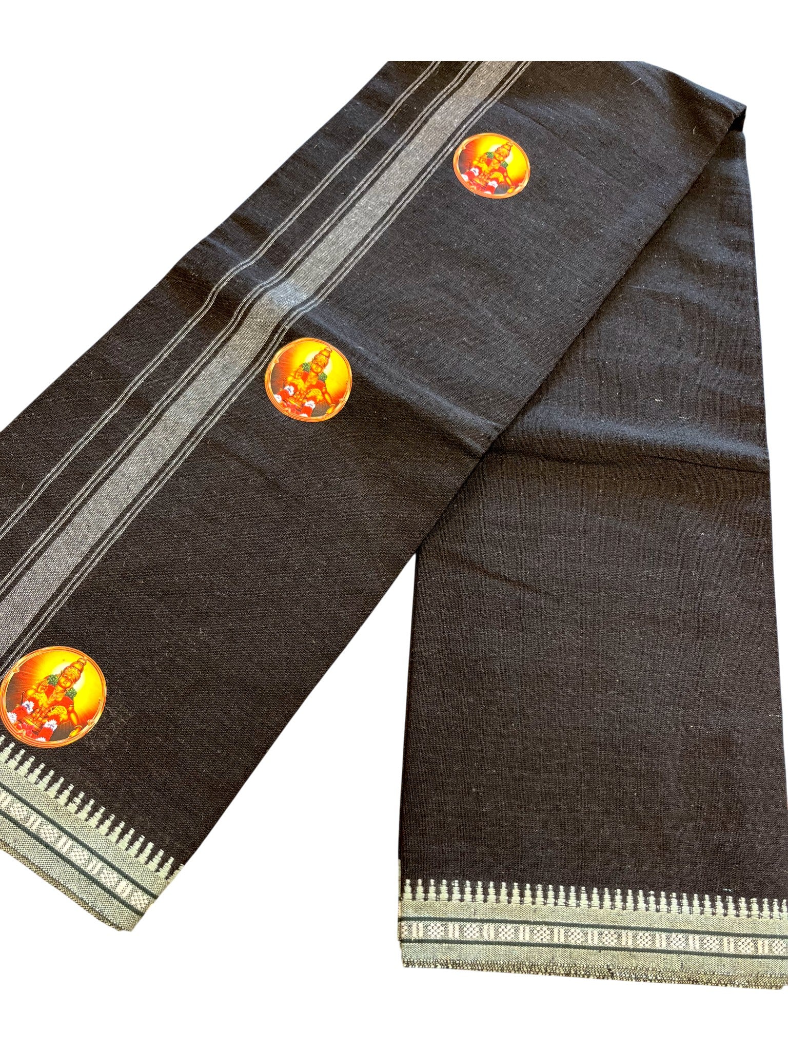 Southloom Black Printed Ayyapan Single Mundu / Otta Mundu (South Indian Kerala Dhoti)