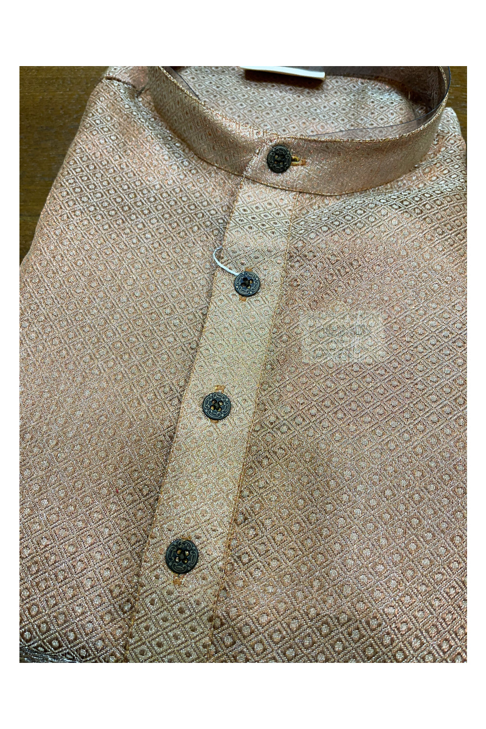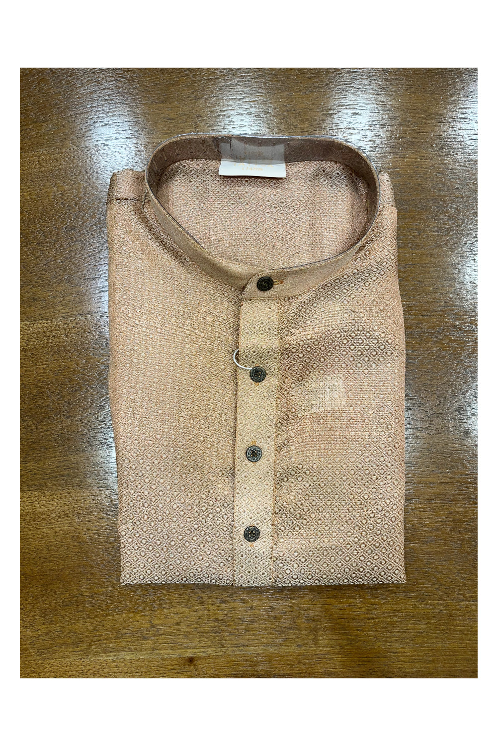 Southloom Brown Woven Patterns Semi Silk Short Kurta for Men