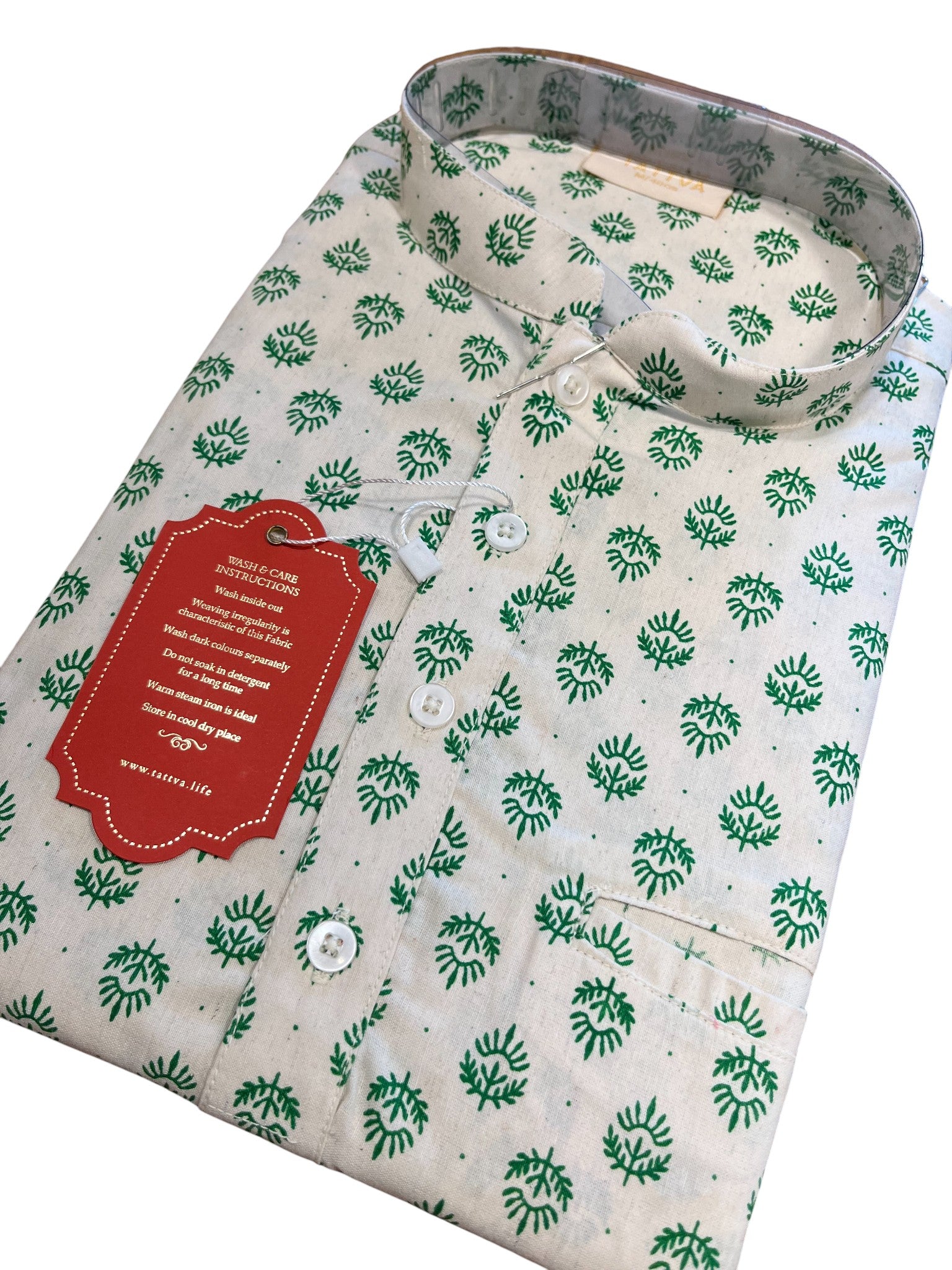 Southloom White Woven Patterns Semi Silk Short Kurta for Men