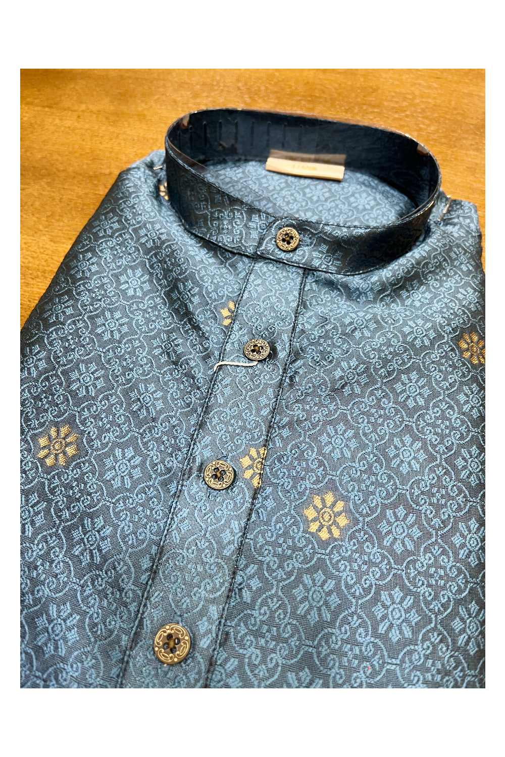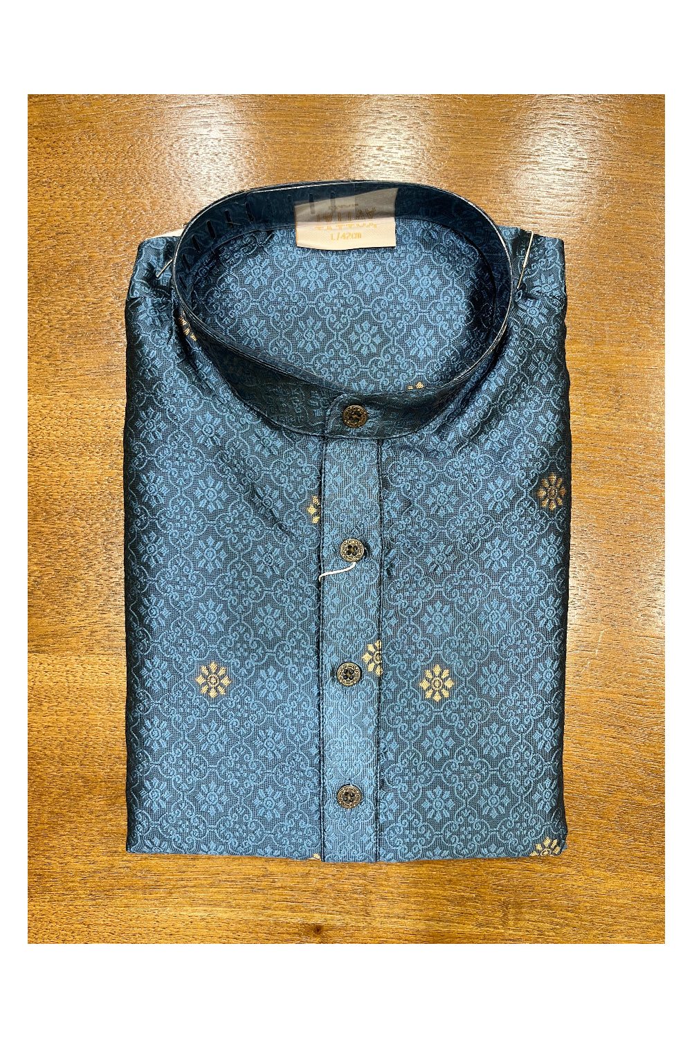 Southloom Blue Woven Patterns Semi Silk Short Kurta for Men